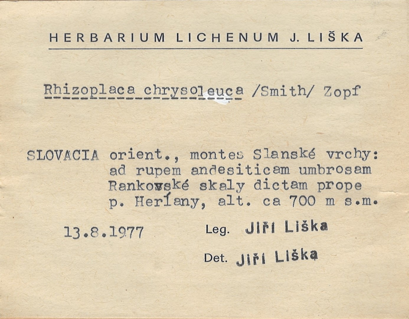 - Herbarium Lichenum J. Liška