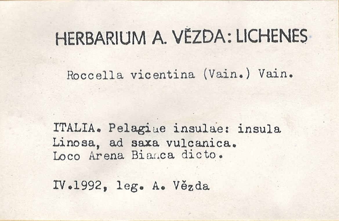 - Herbarium A. Vězda - duplicate in Herbarium Lichenum J. Liška