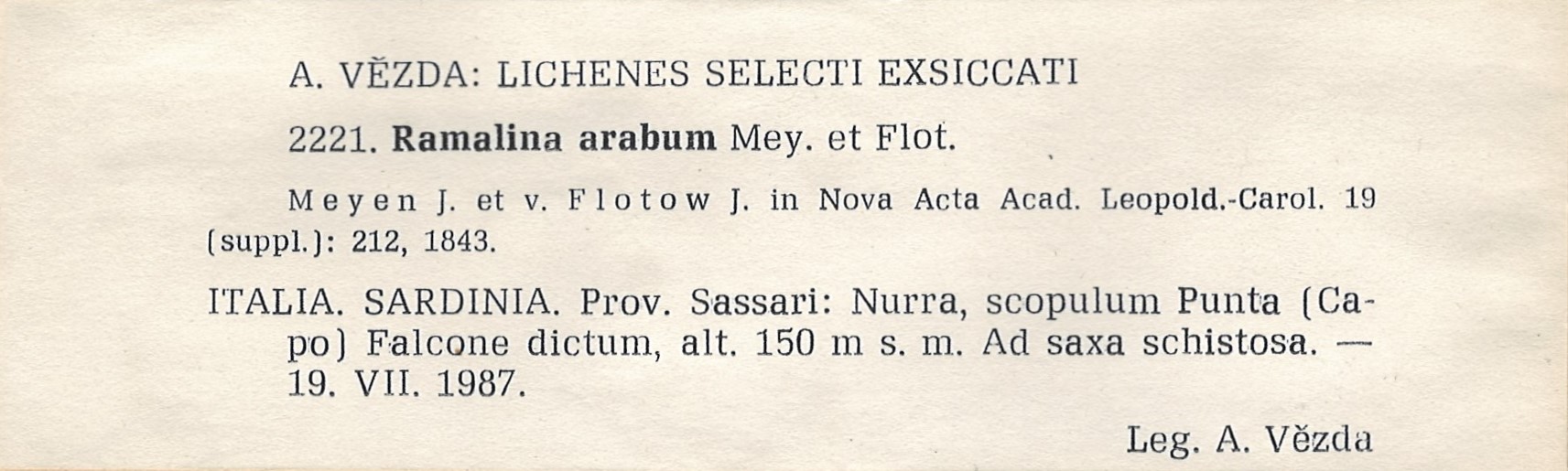 - Herbarium A. Vězda - duplicate in Herbarium Lichenum J. Liška