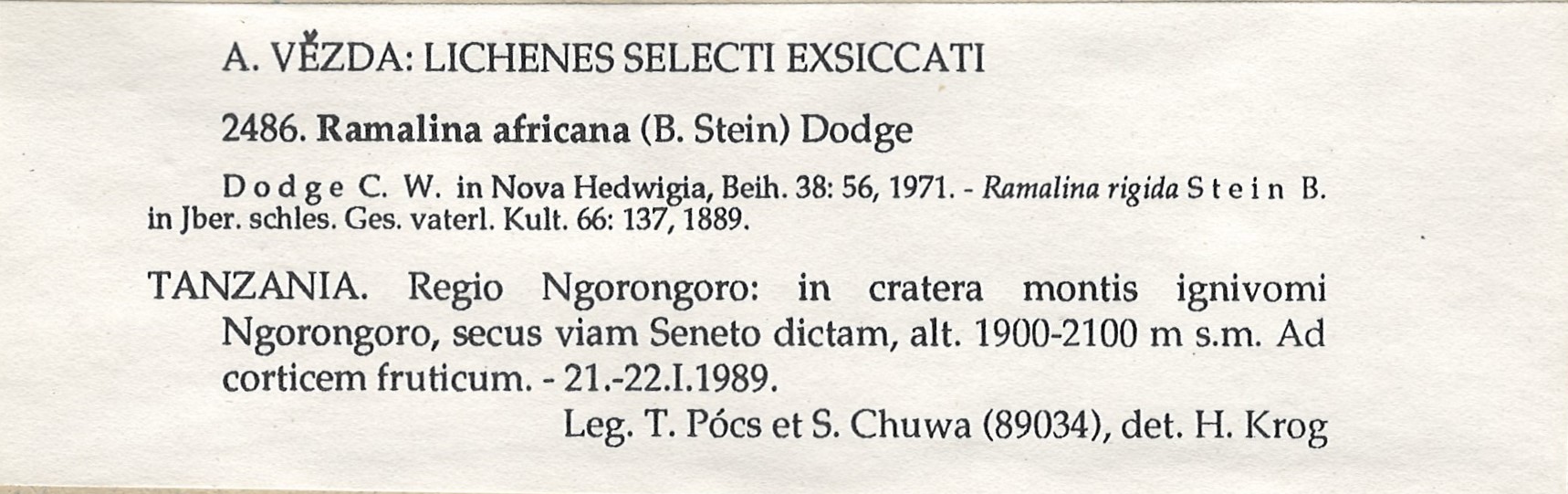 - Herbarium A. Vězda - duplicate in Herbarium Lichenum J. Liška