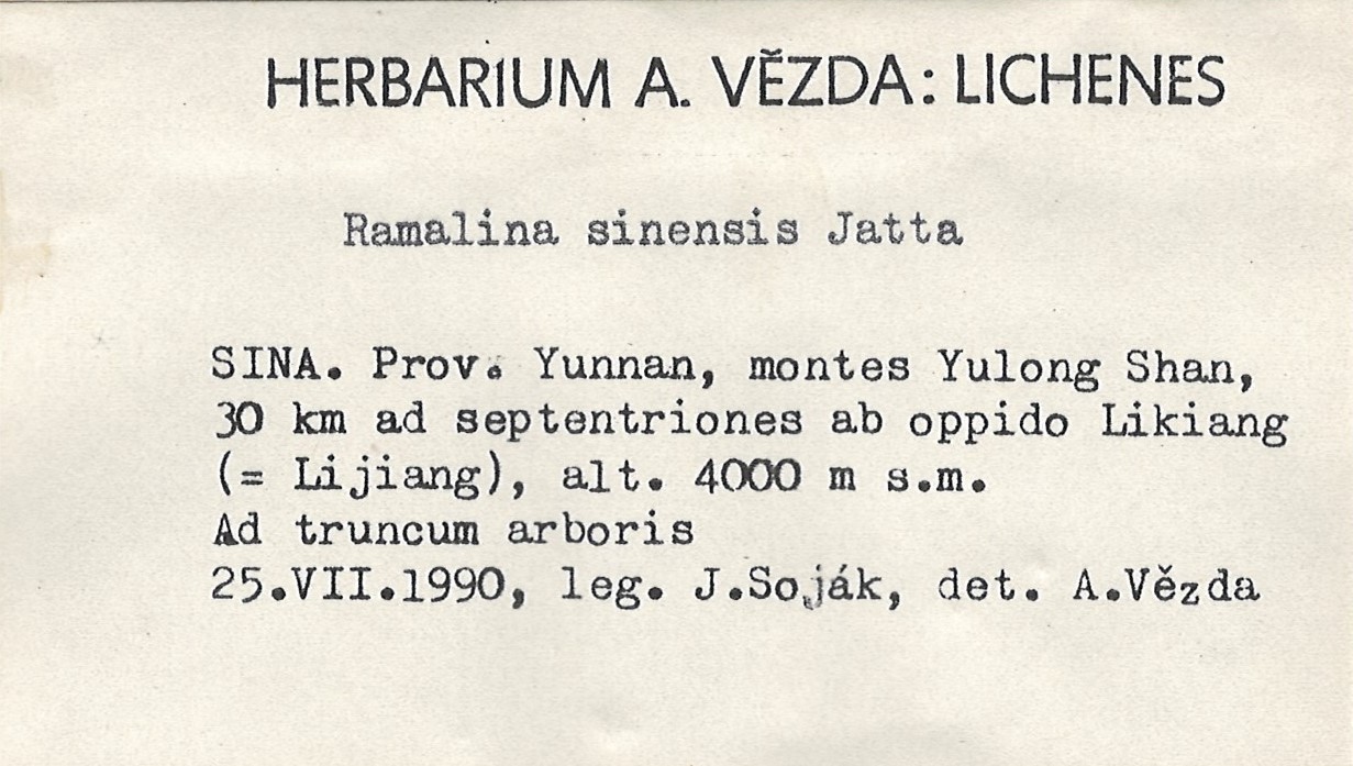 - Herbarium A. Vězda - duplicate in Herbarium Lichenum J. Liška