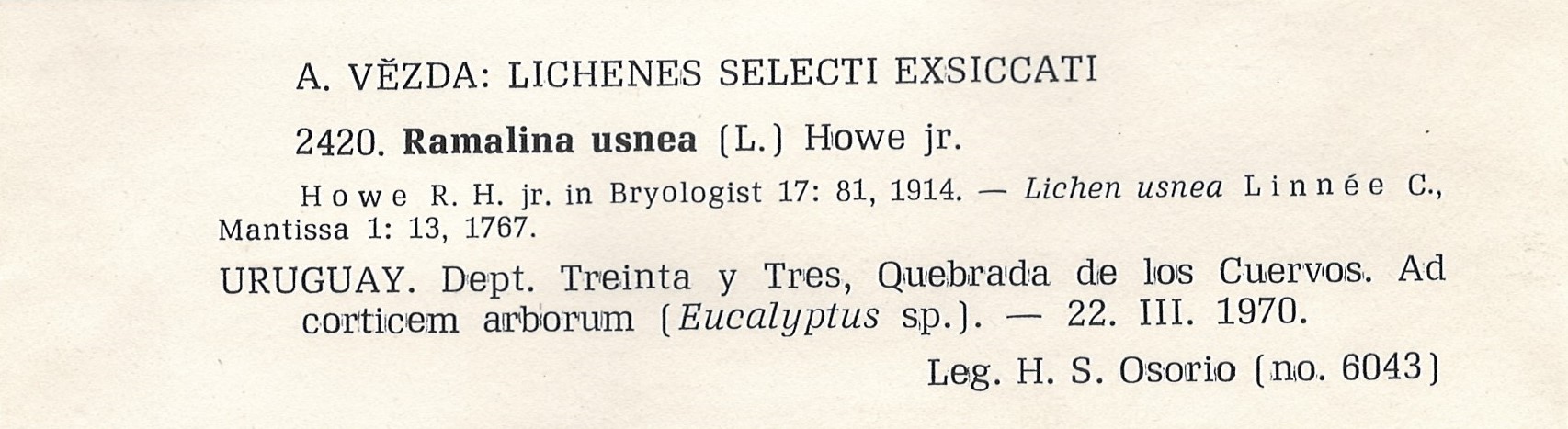 - Herbarium A. Vězda - duplicate in Herbarium Lichenum J. Liška