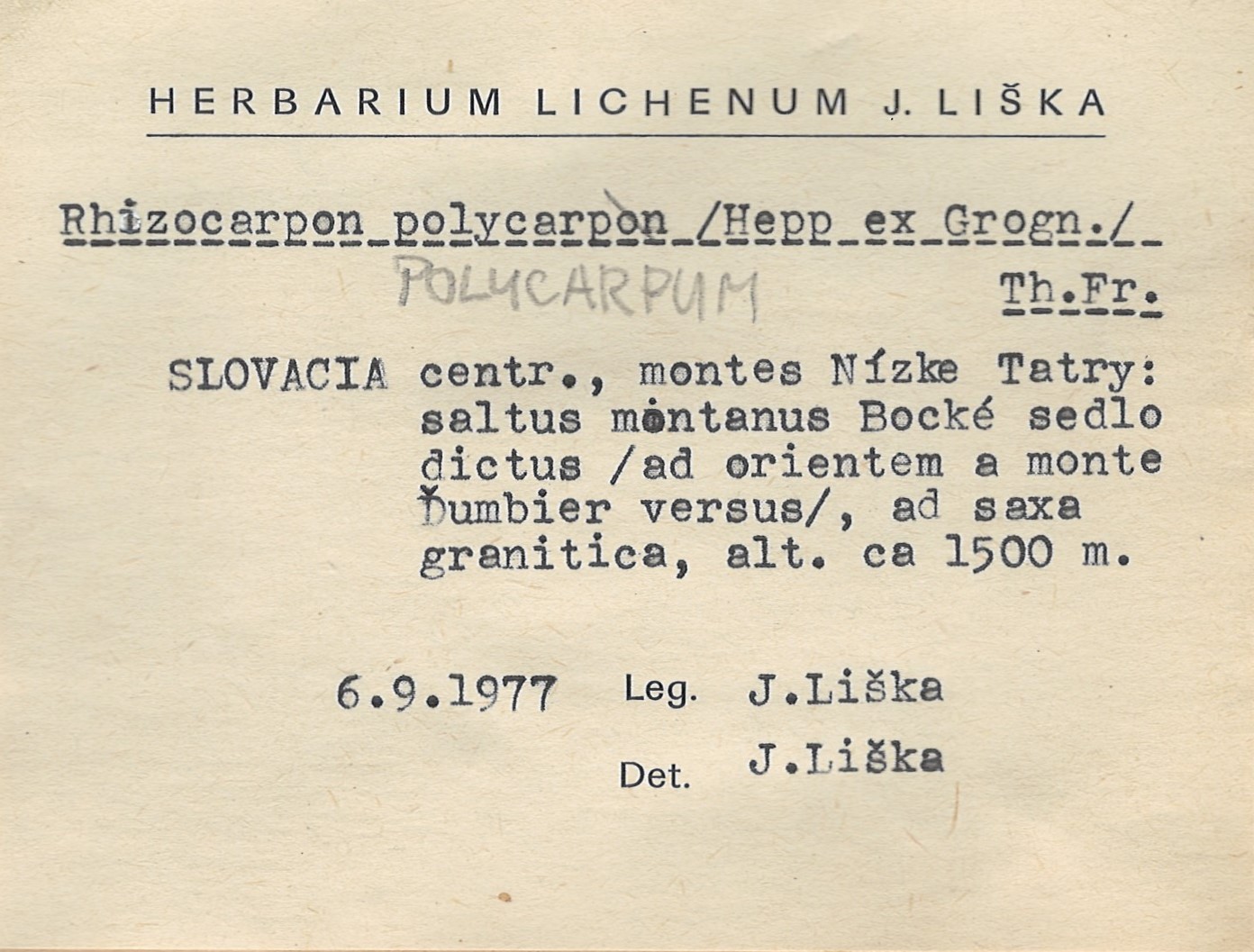- Herbarium Lichenum J. Liška
