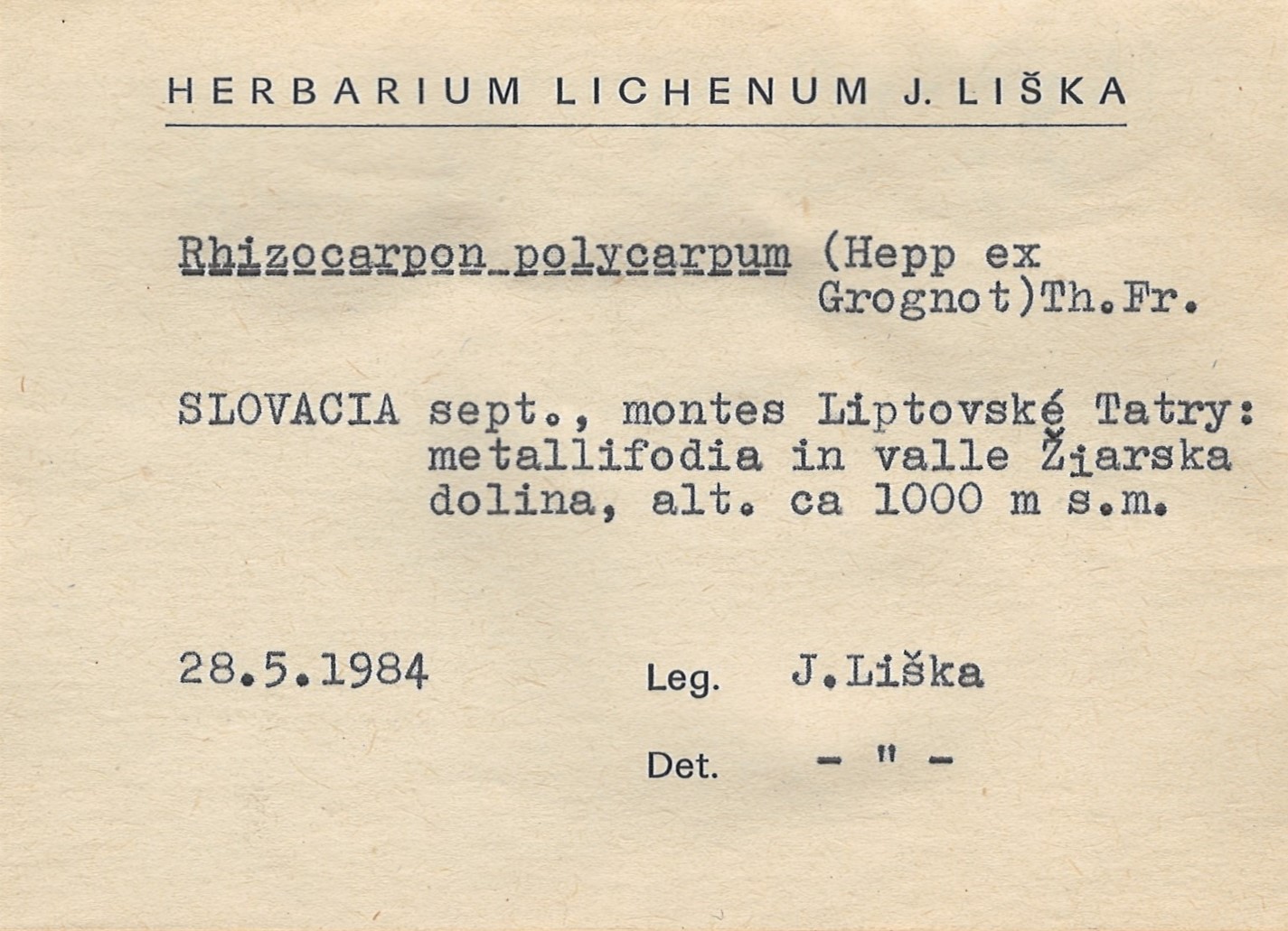 - Herbarium Lichenum J. Liška