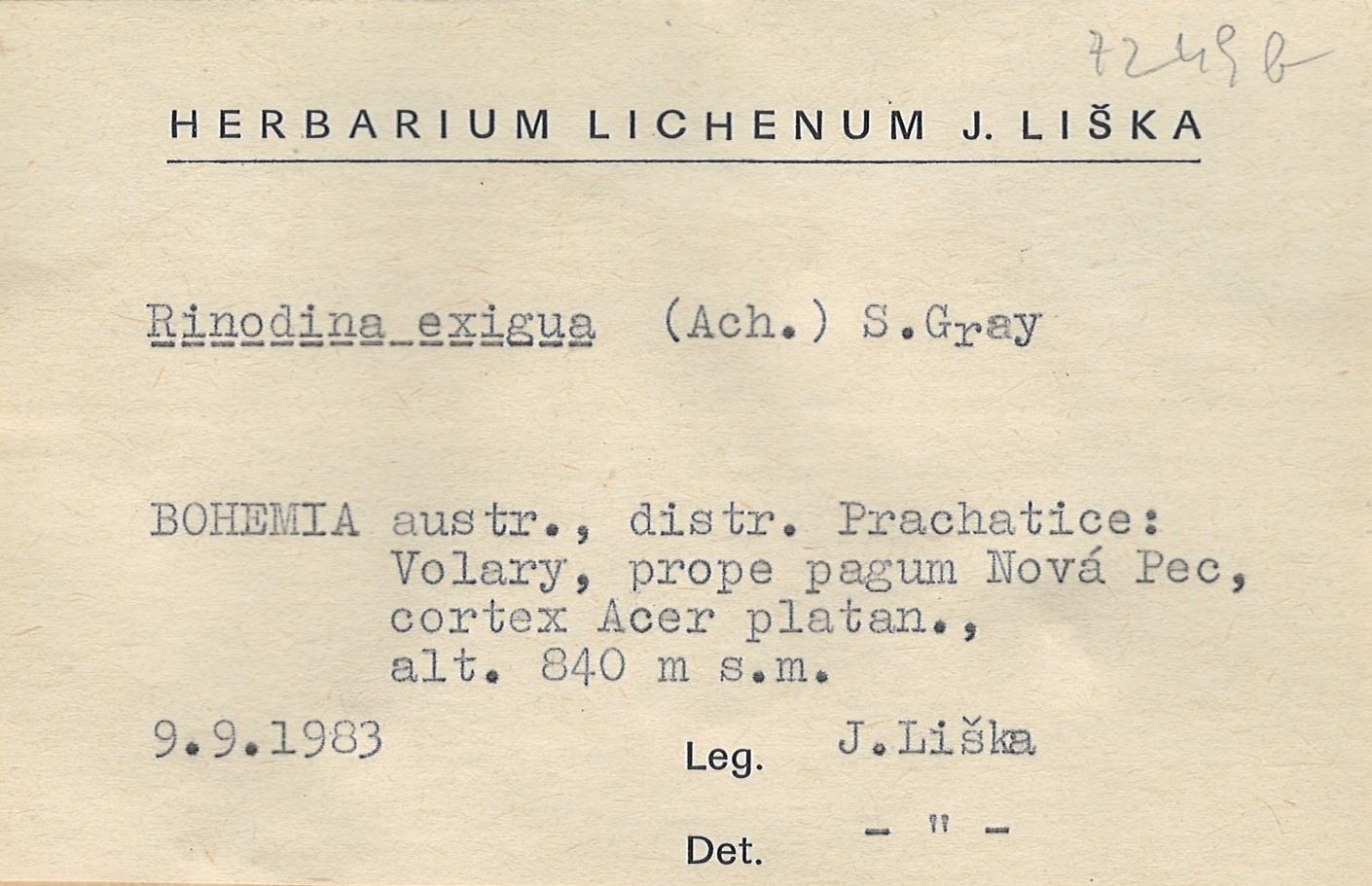 - Herbarium Lichenum J. Liška
