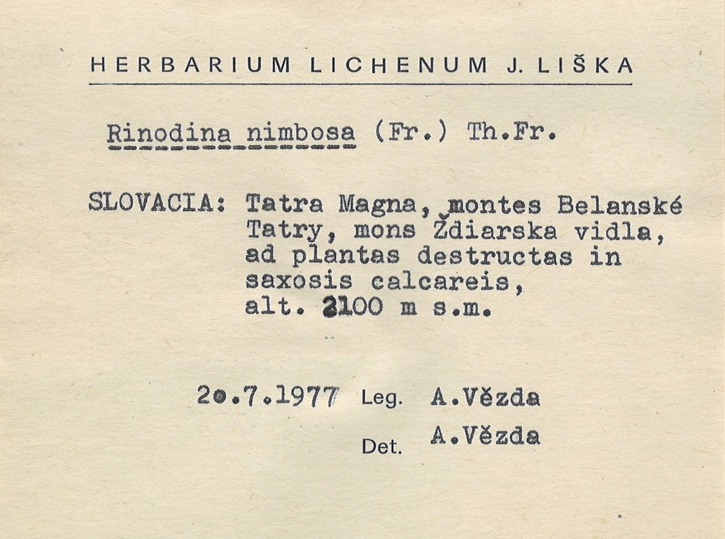 - Herbarium Lichenum J. Liška