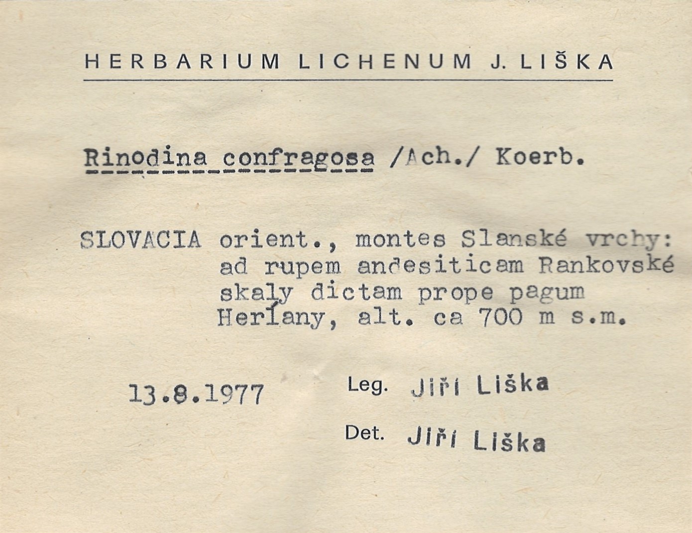 - Herbarium Lichenum J. Liška