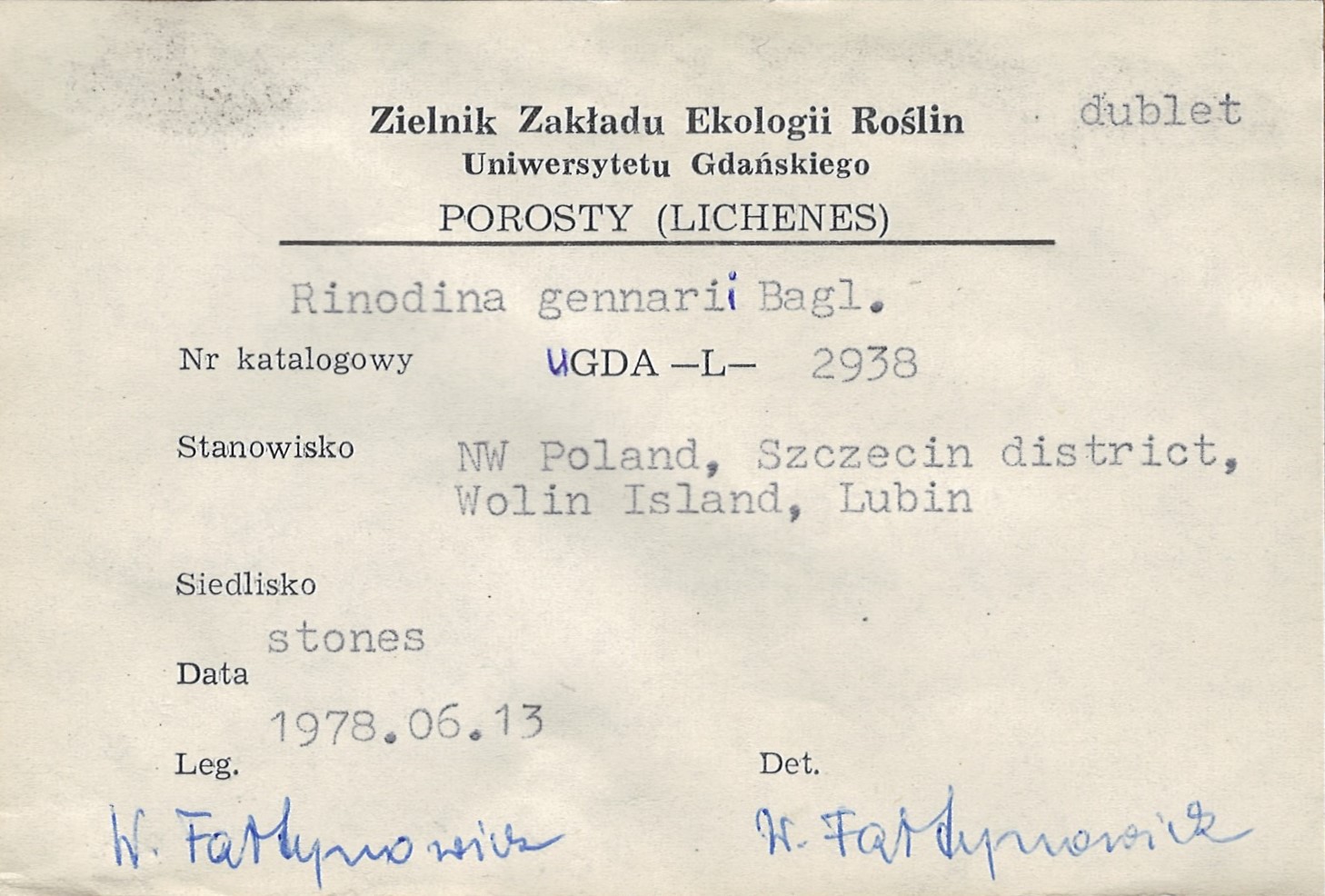 - Notes - specimen (NOT printed on the scheda)