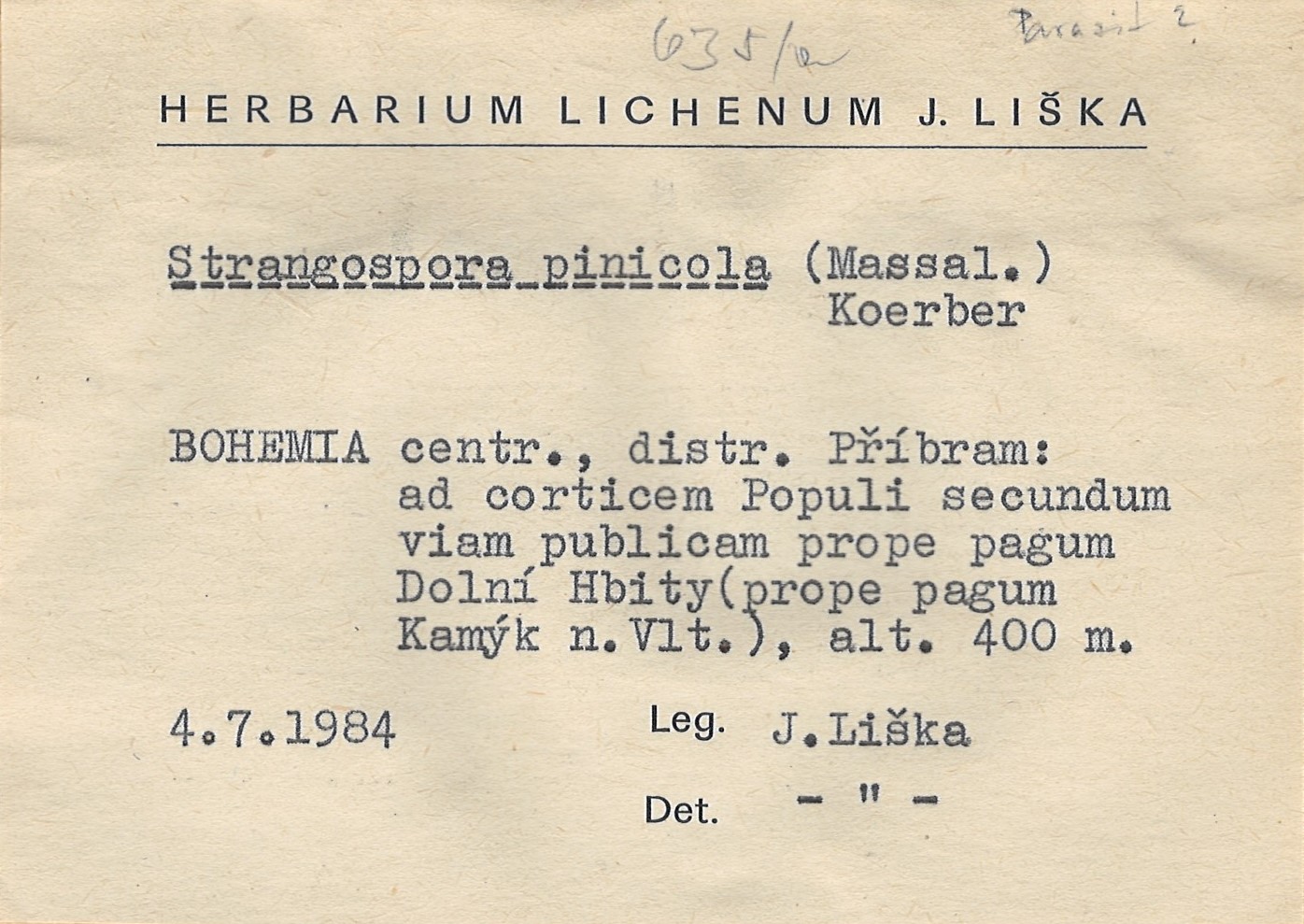 - Herbarium Lichenum J. Liška