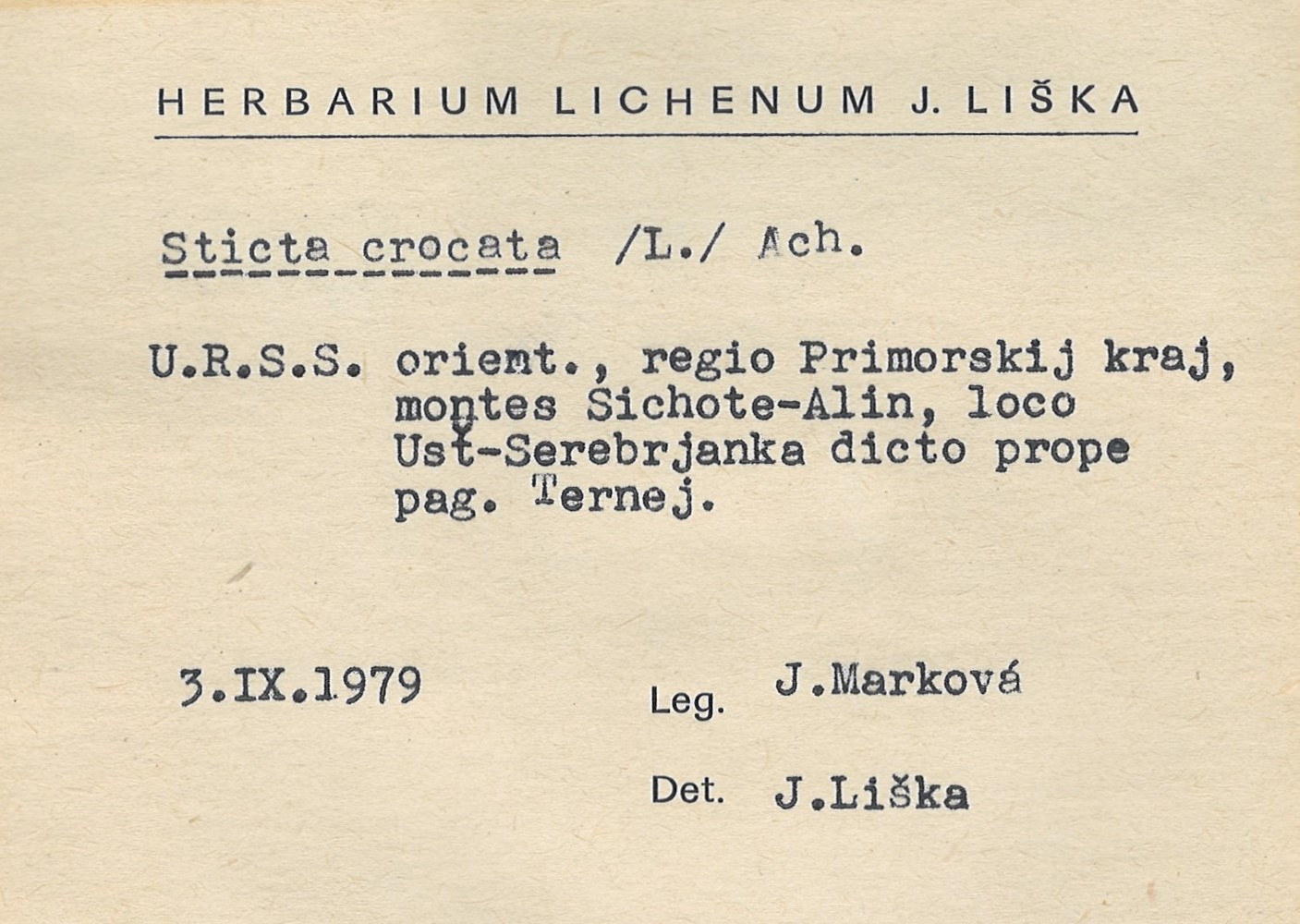 - Herbarium Lichenum J. Liška