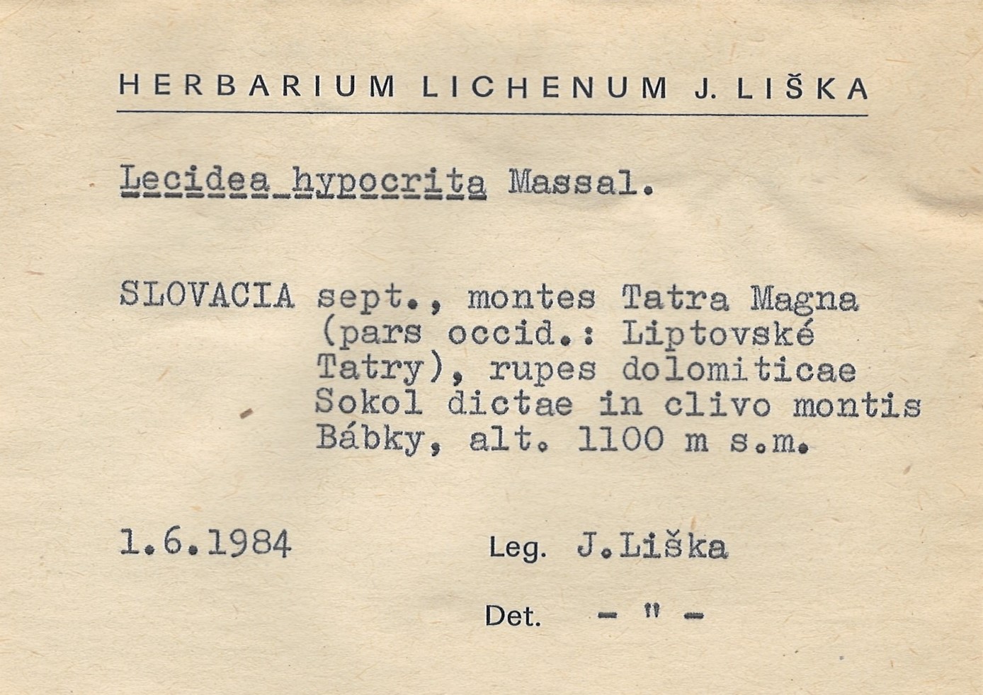 - Herbarium Lichenum J. Liška