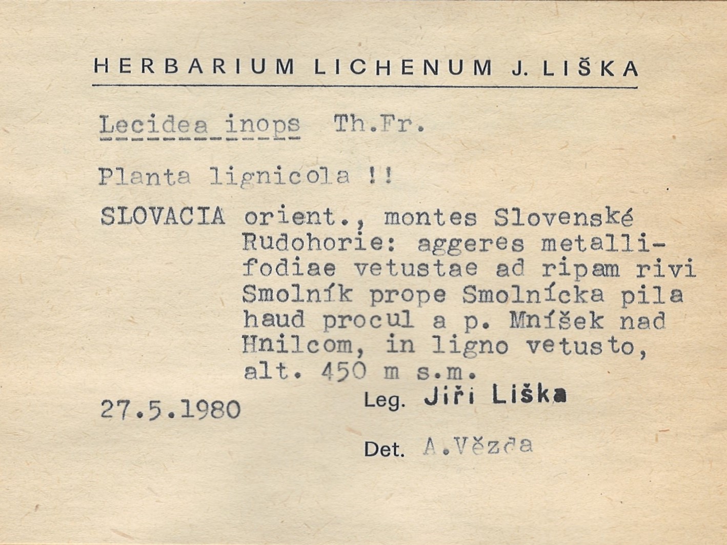 - Herbarium Lichenum J. Liška