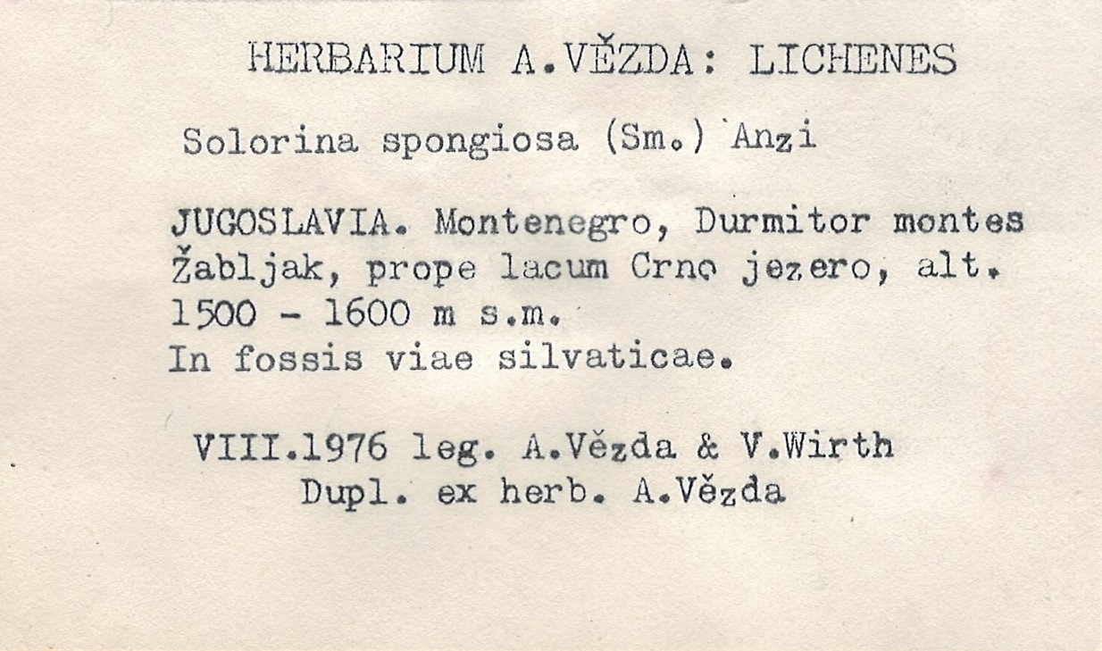 - Herbarium A. Vězda - duplicate in Herbarium Lichenum J. Liška