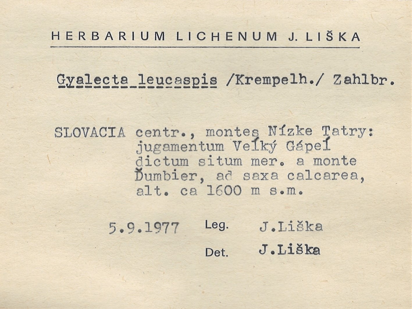 - Herbarium Lichenum J. Liška