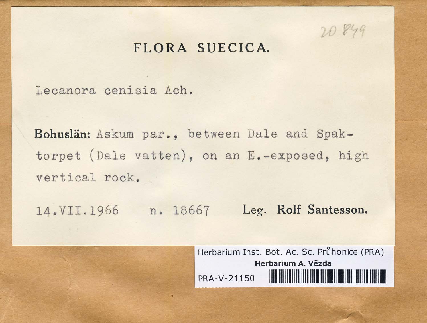 - Deposited in parcel no. 103 Lecanora Ca-Ce