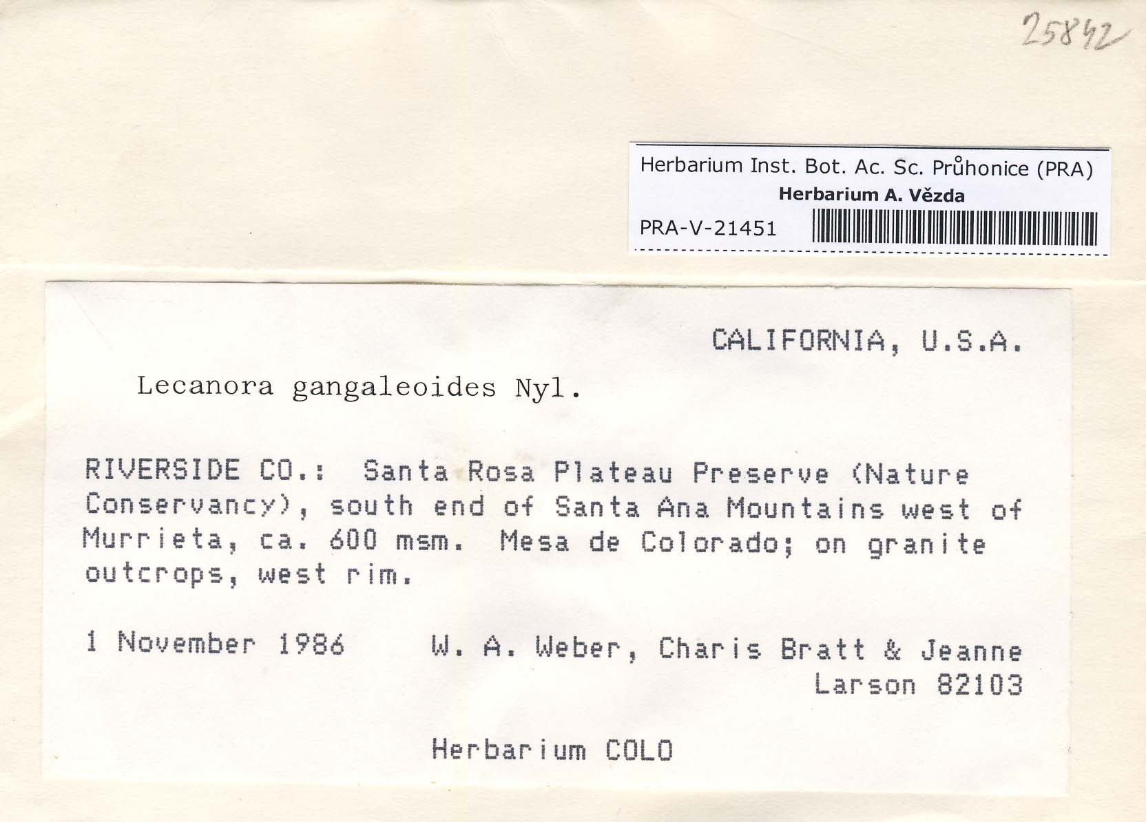 - Deposited in parcel no. 107 Lecanora G - H