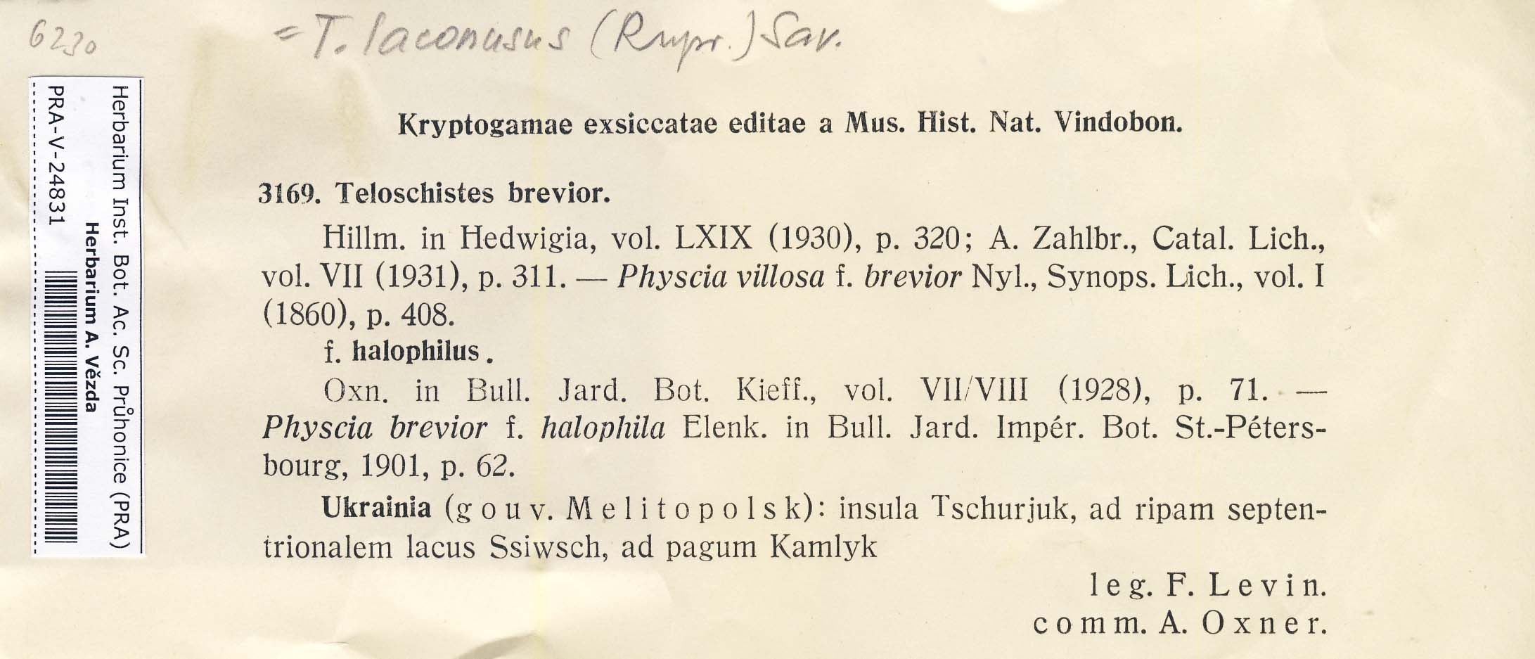 - Deposited in parcel no. 39 Teloschistes, Xanthopeltis, Xantoschistes