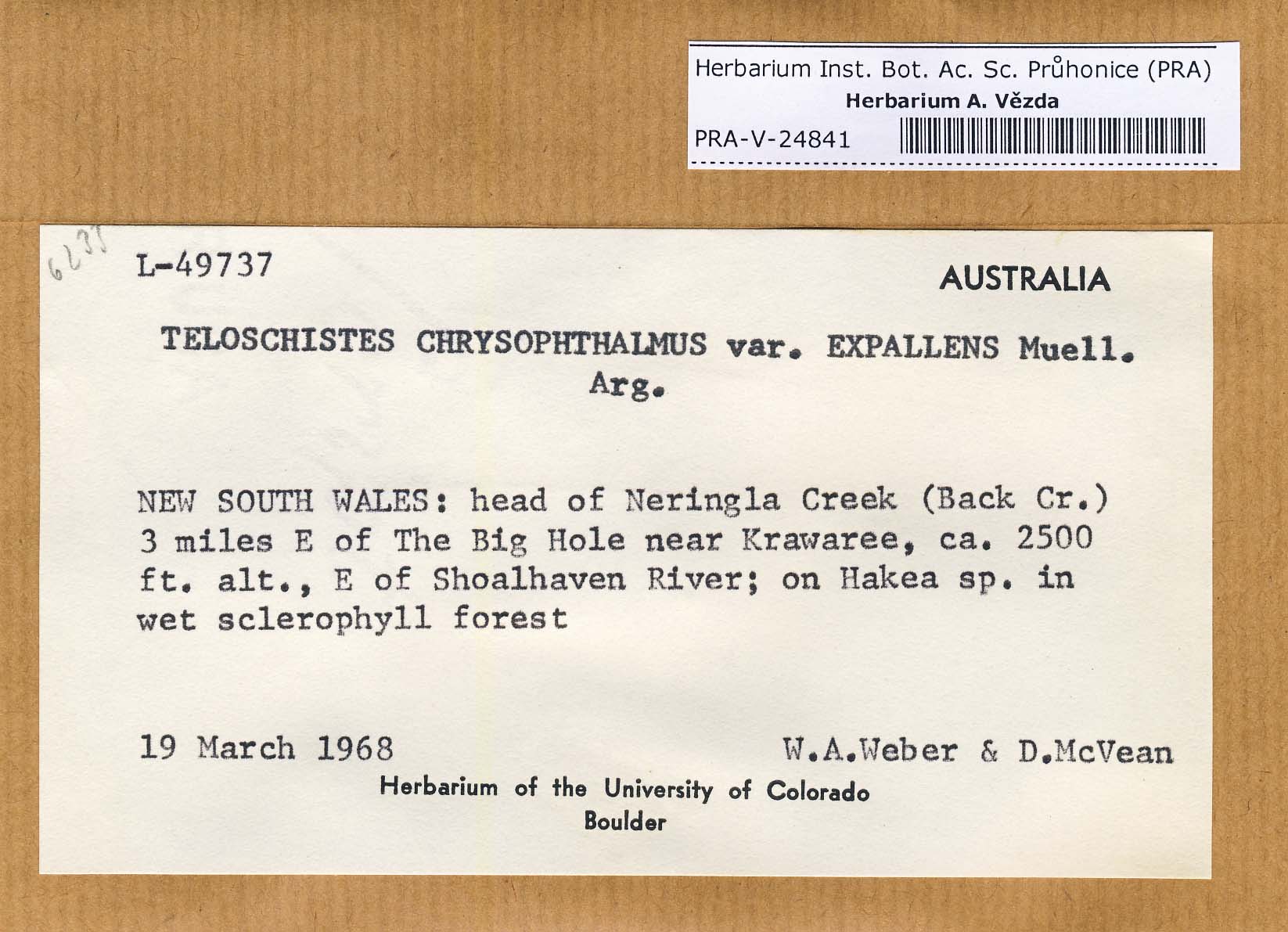 - Deposited in parcel no. 39 Teloschistes, Xanthopeltis, Xantoschistes