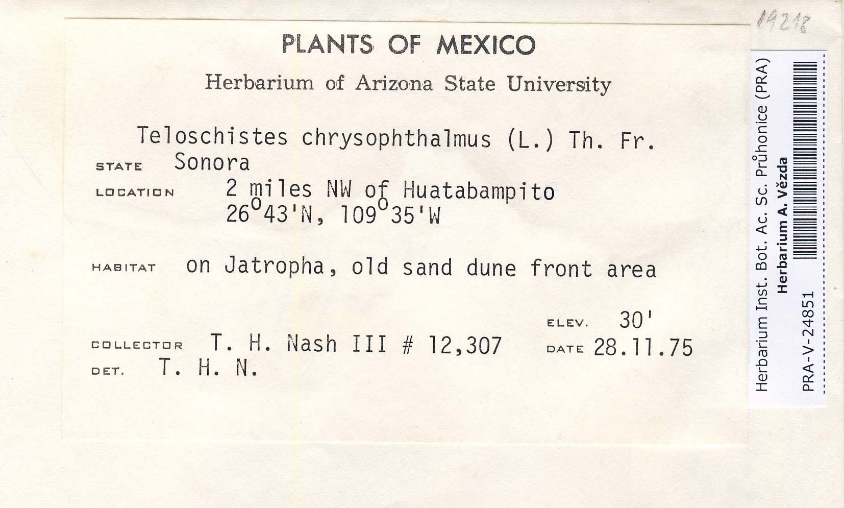 - Deposited in parcel no. 39 Teloschistes, Xanthopeltis, Xantoschistes