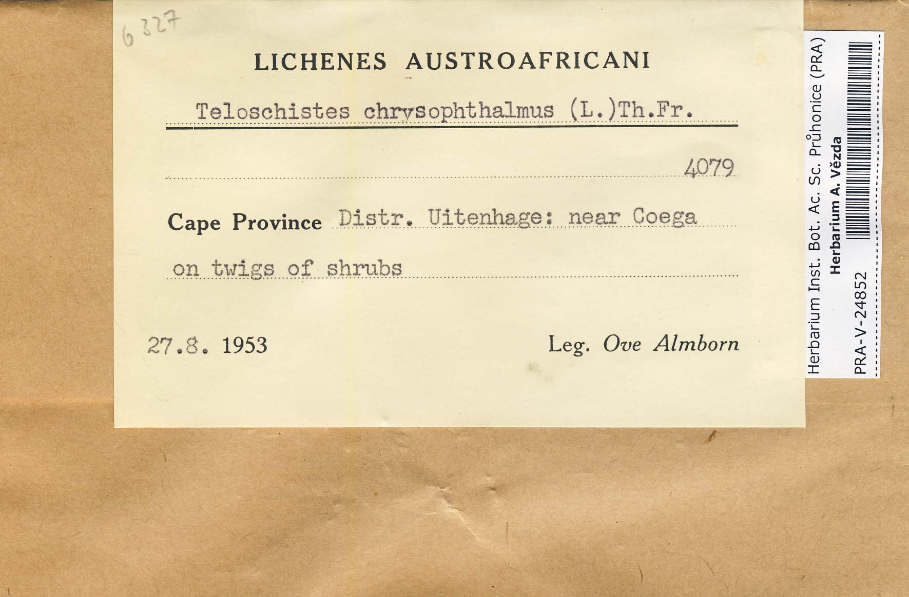 - Deposited in parcel no. 39 Teloschistes, Xanthopeltis, Xantoschistes