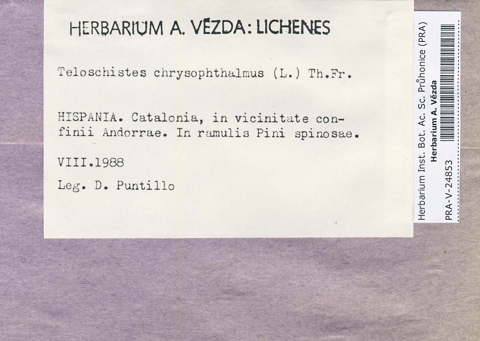 - Deposited in parcel no. 39 Teloschistes, Xanthopeltis, Xantoschistes