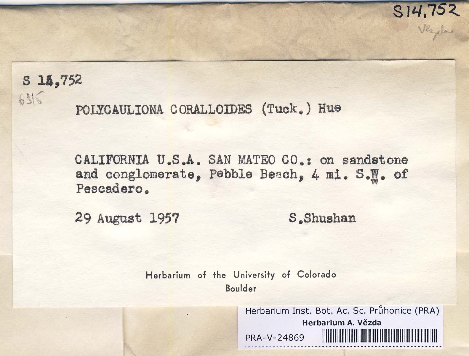 - Deposited in parcel no. 39 Teloschistes, Xanthopeltis, Xantoschistes