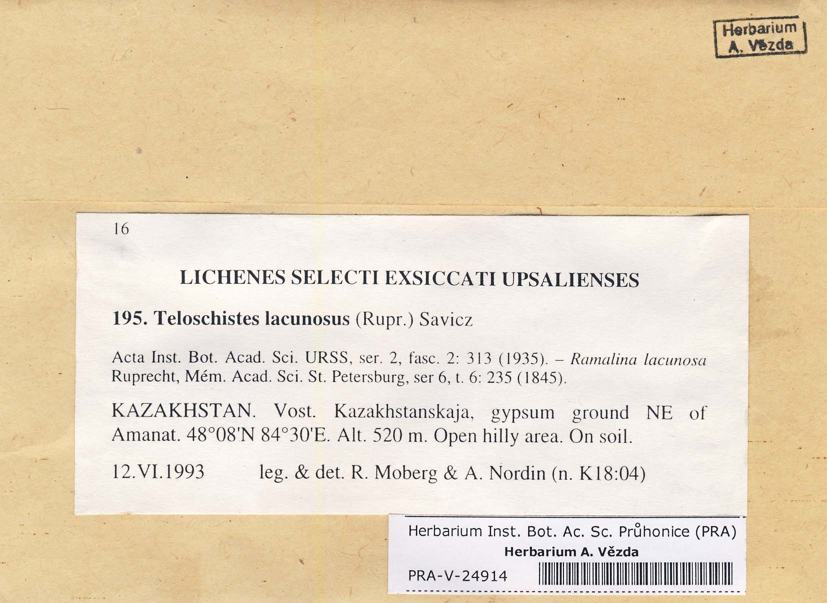 - Deposited in parcel no. 39 Teloschistes, Xanthopeltis, Xantoschistes