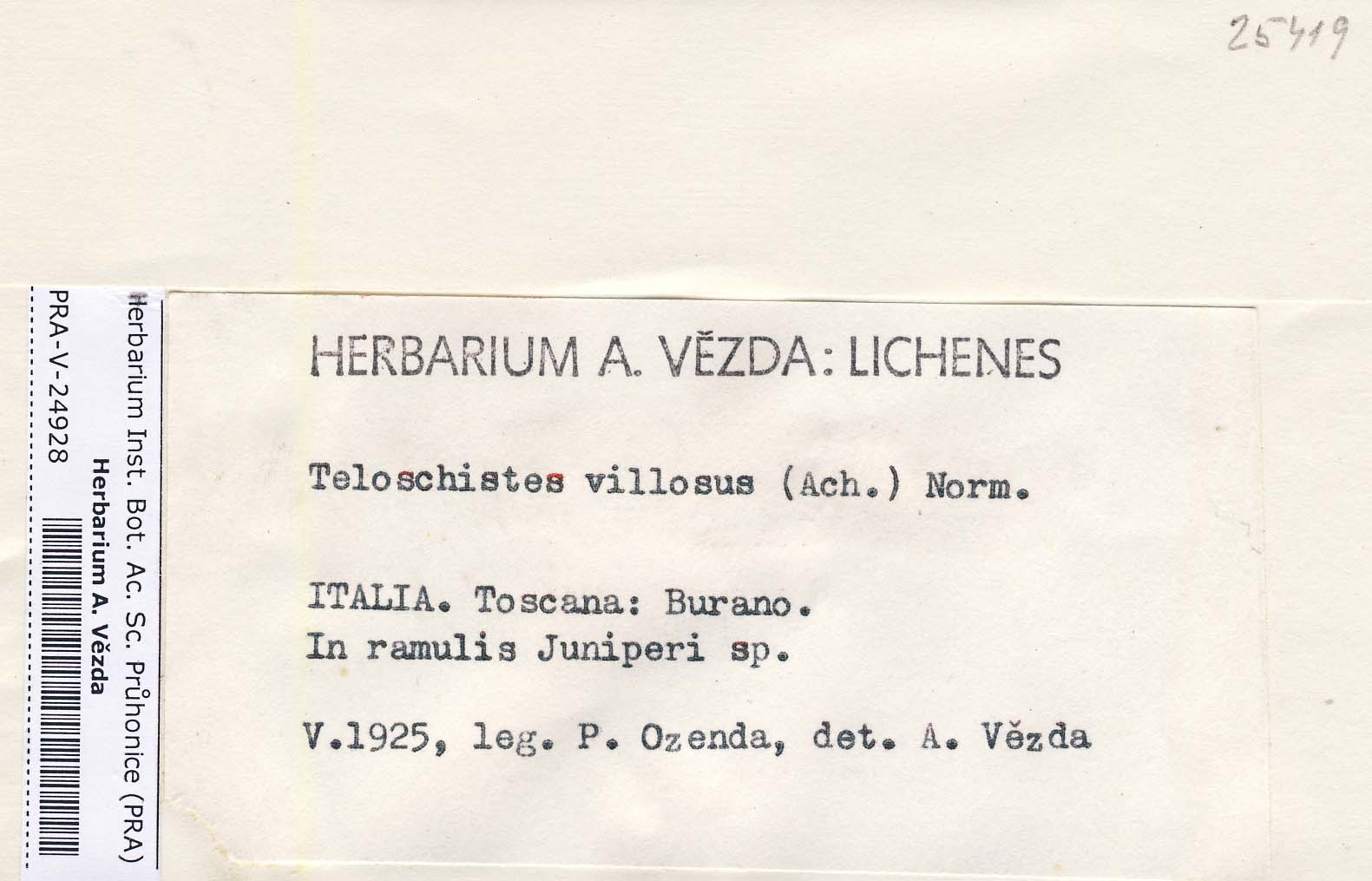 - Deposited in parcel no. 39 Teloschistes, Xanthopeltis, Xantoschistes