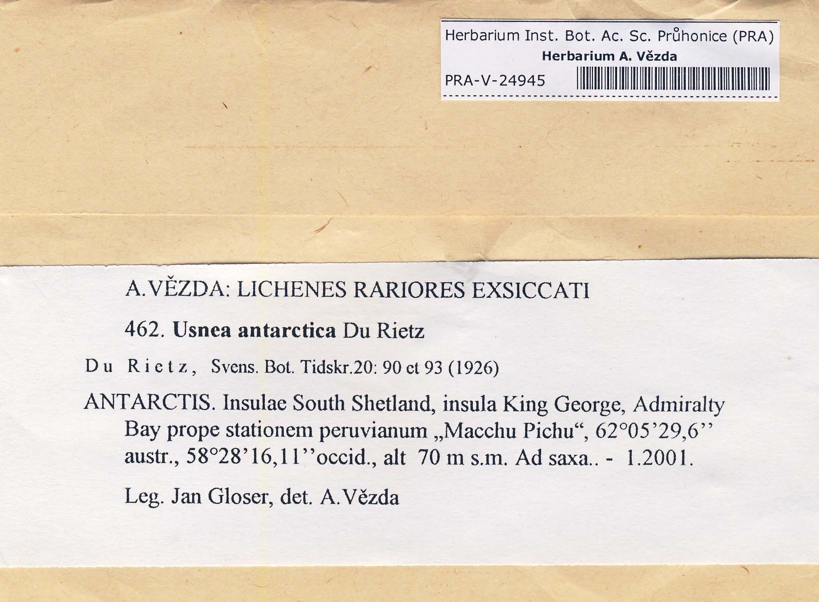 - Deposited in parcel no. 123 Usnea A-H