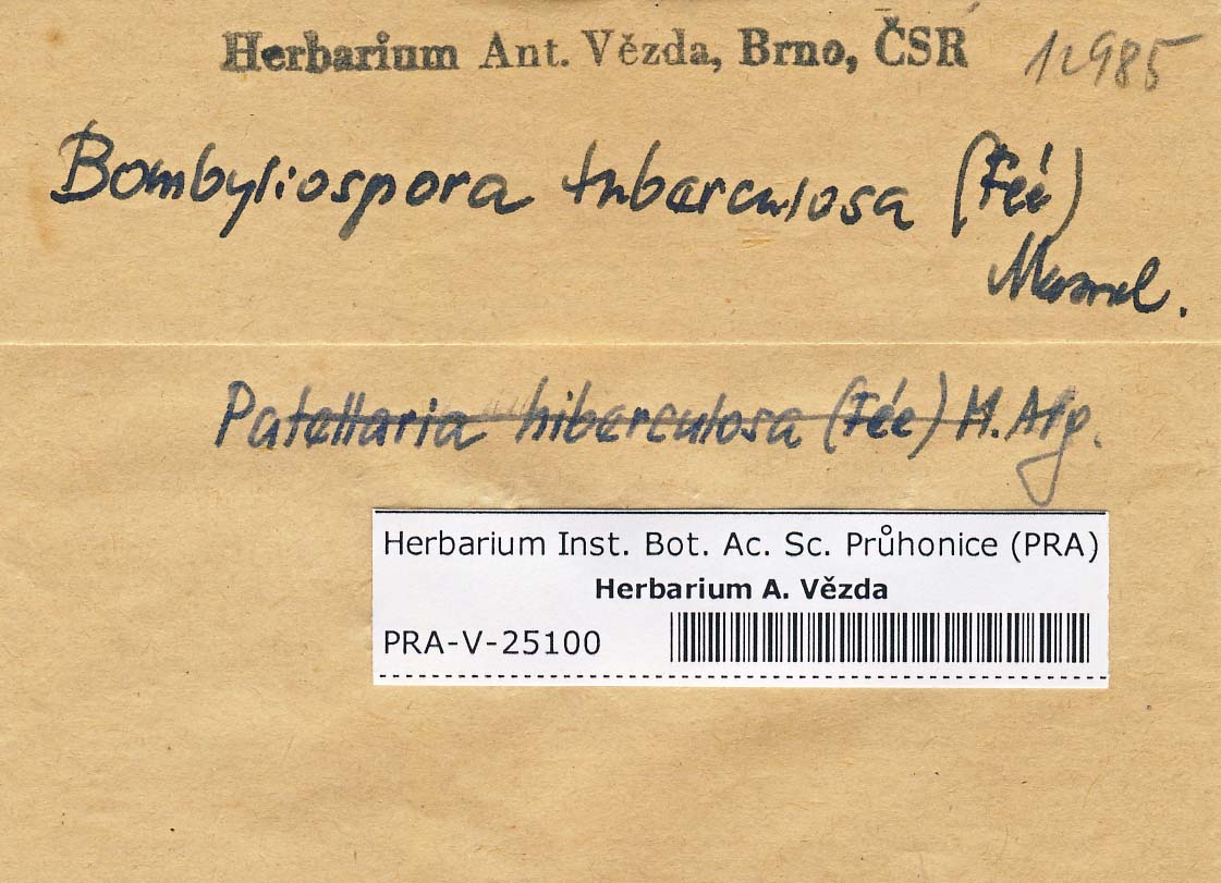 - Deposited in parcel no. 43 Bombyliospora, Hapellia, Letroudia, Megalospora, Schizodiscus, Vezdaea