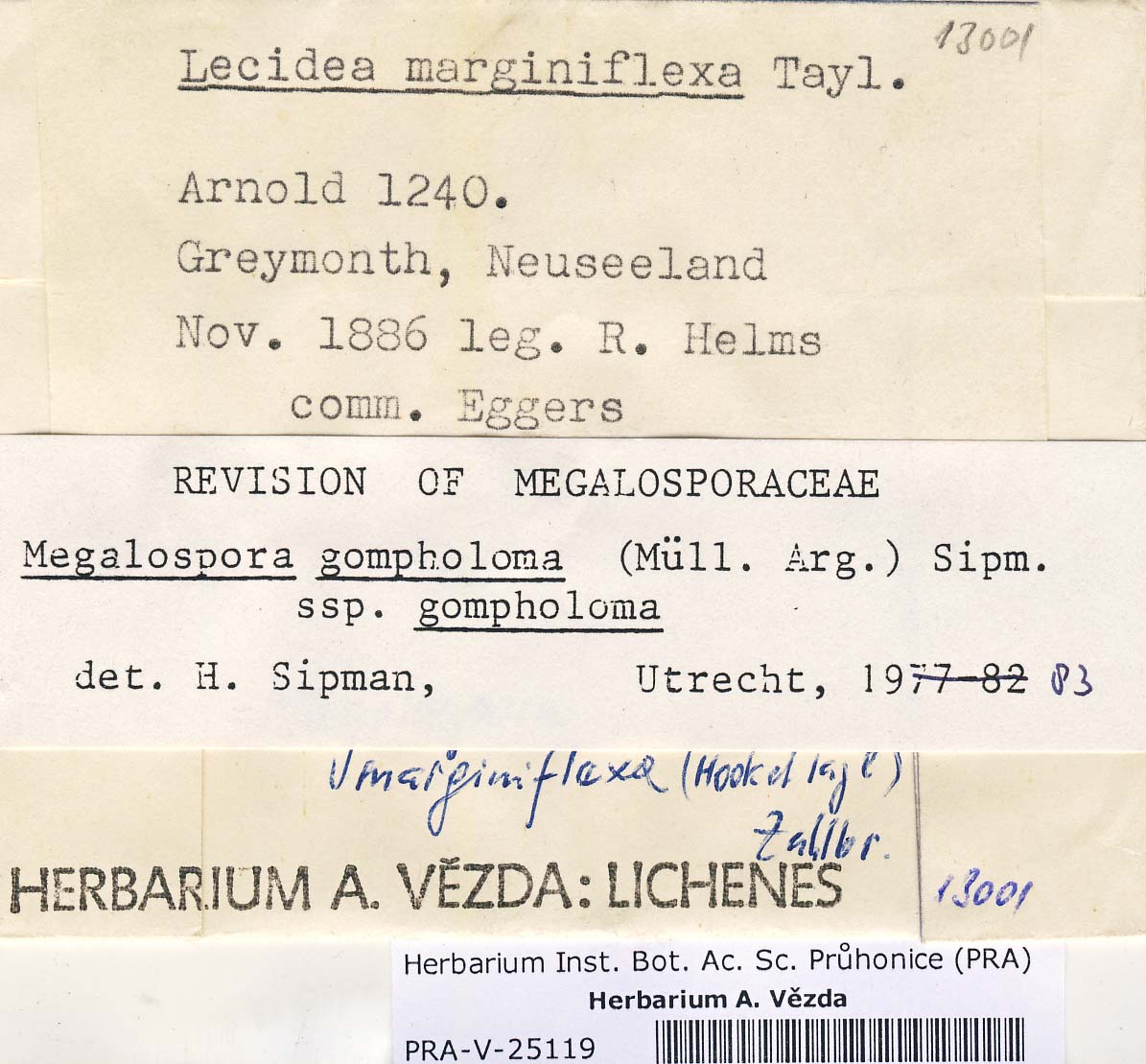 - Deposited in parcel no. 43 Bombyliospora, Hapellia, Letroudia, Megalospora, Schizodiscus, Vezdaea