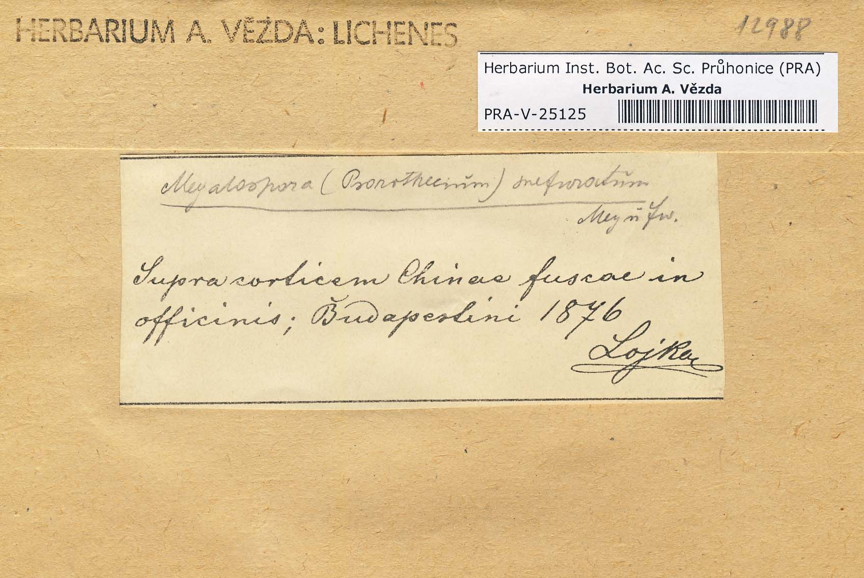 - Deposited in parcel no. 43 Bombyliospora, Hapellia, Letroudia, Megalospora, Schizodiscus, Vezdaea