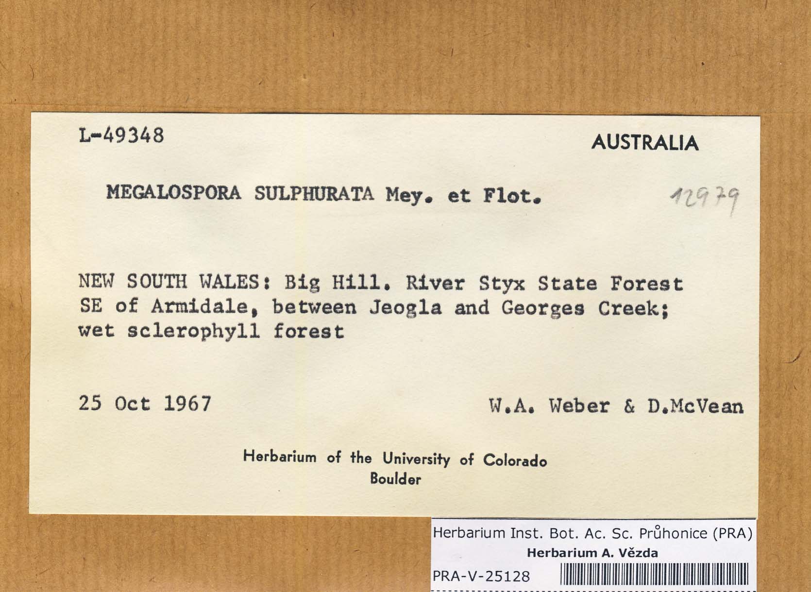 - Deposited in parcel no. 43 Bombyliospora, Hapellia, Letroudia, Megalospora, Schizodiscus, Vezdaea