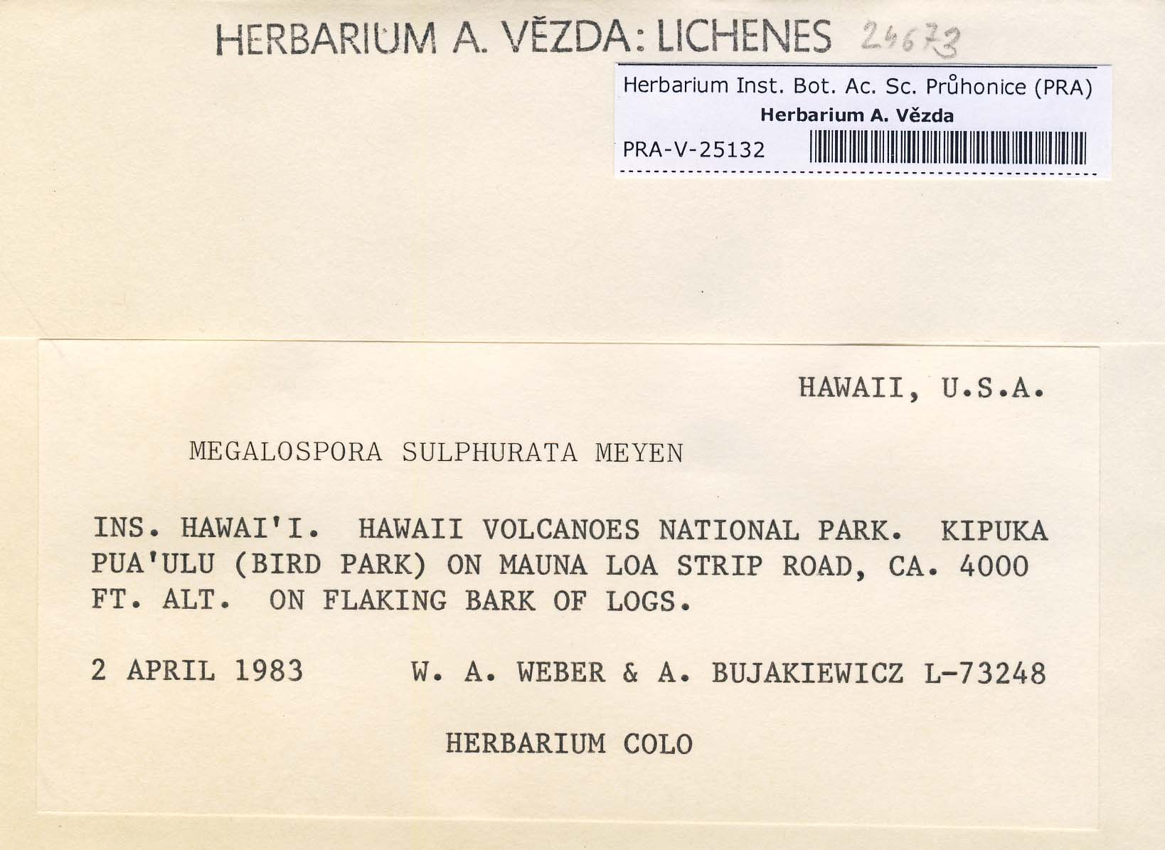 - Deposited in parcel no. 43 Bombyliospora, Hapellia, Letroudia, Megalospora, Schizodiscus, Vezdaea