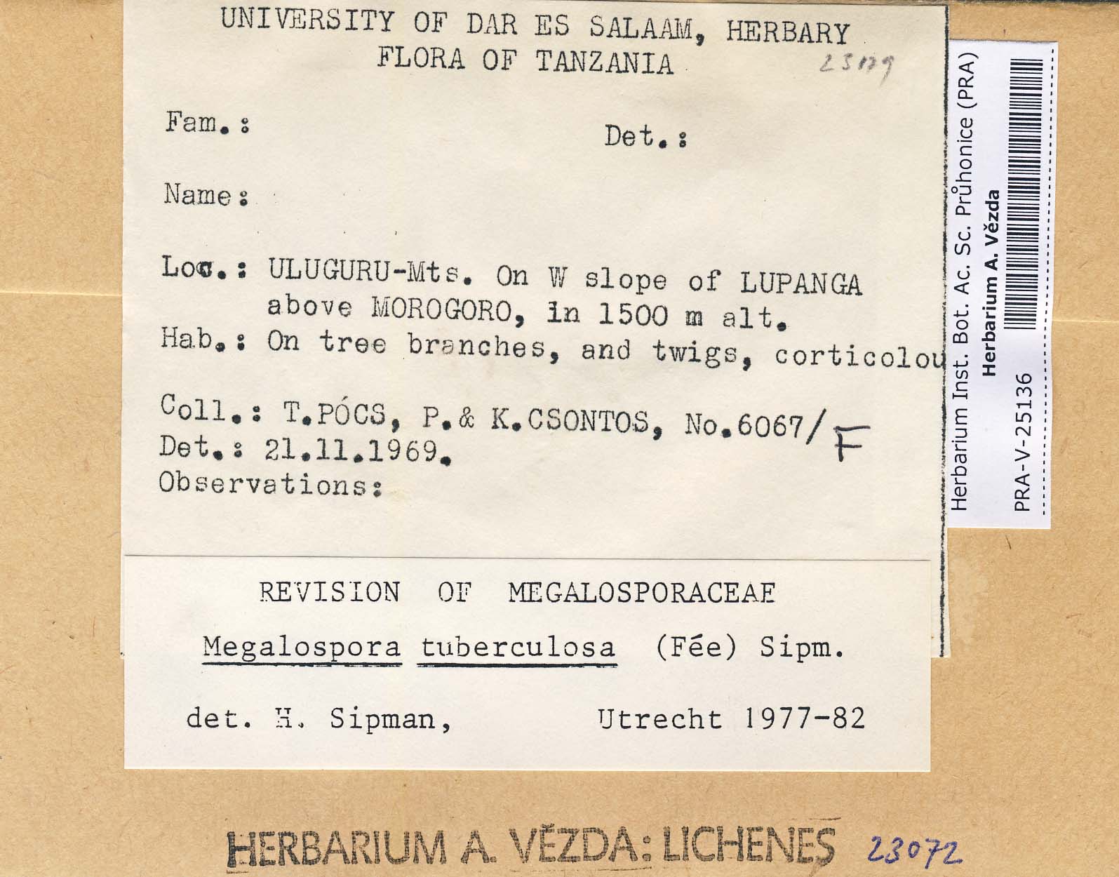 - Deposited in parcel no. 43 Bombyliospora, Hapellia, Letroudia, Megalospora, Schizodiscus, Vezdaea