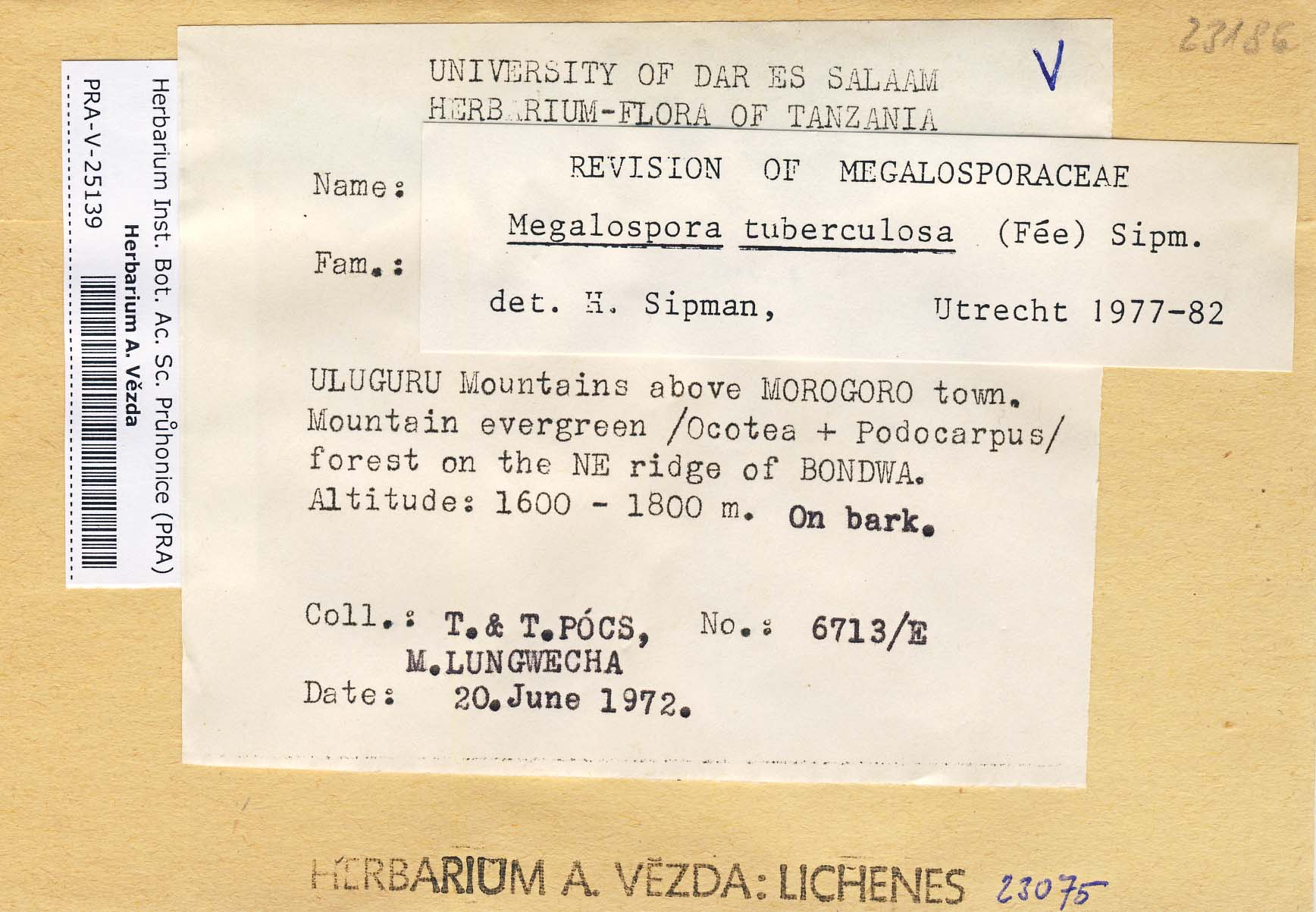- Deposited in parcel no. 43 Bombyliospora, Hapellia, Letroudia, Megalospora, Schizodiscus, Vezdaea