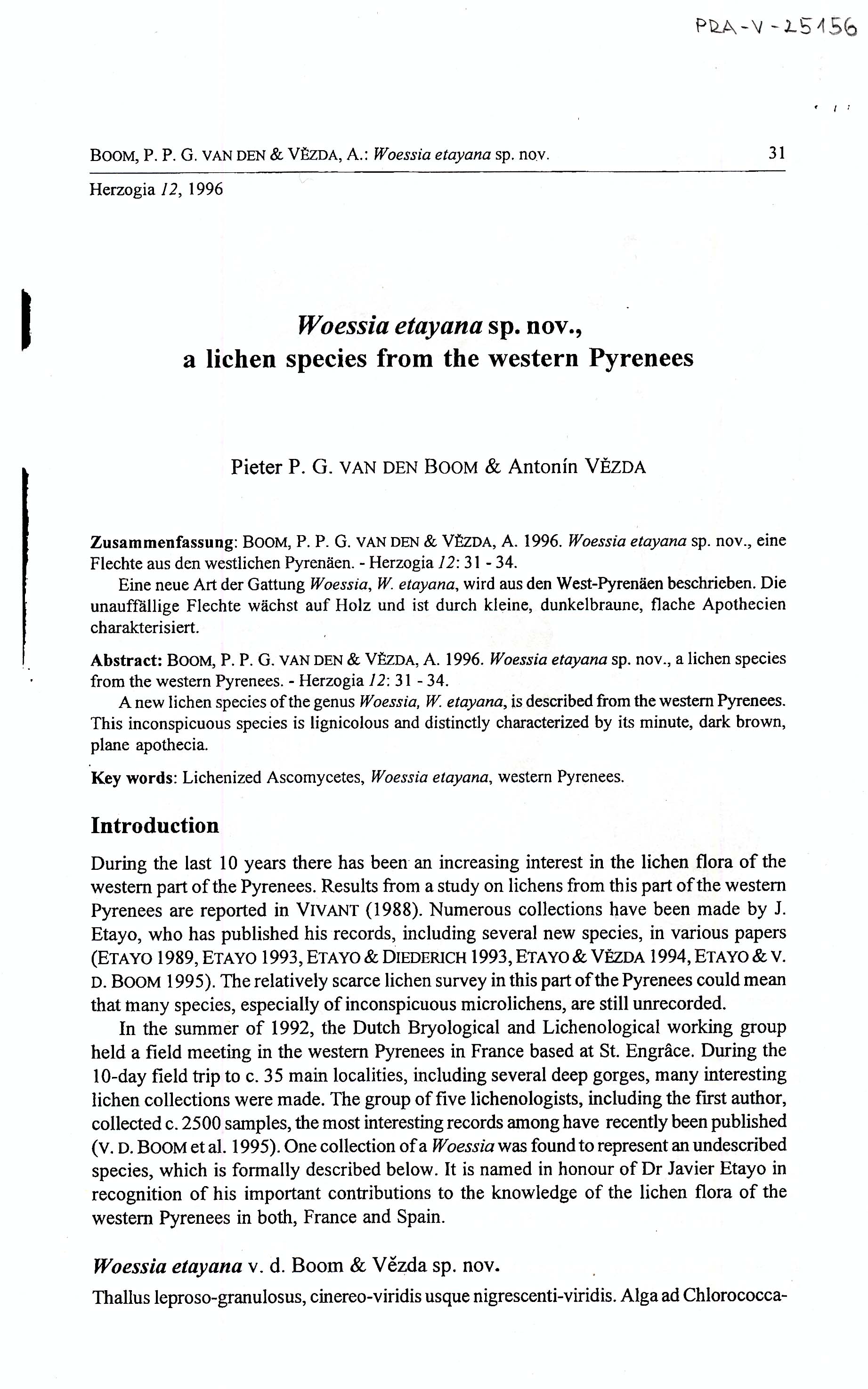 - Woessia etayana van den Boom et Vězda