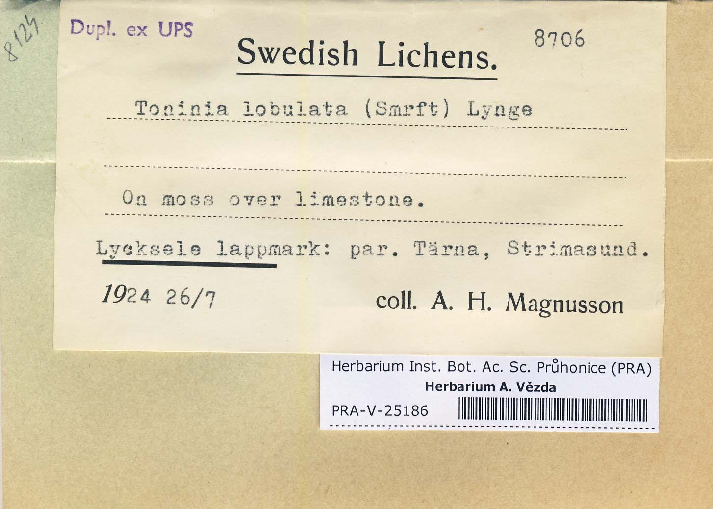 - Deposited in parcel no. 44 Toninia L-Y