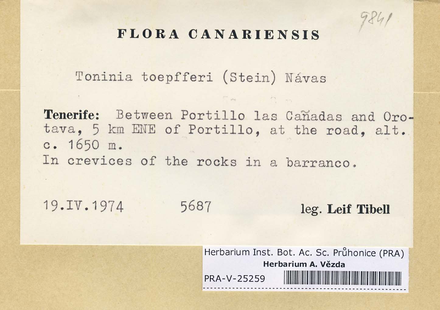 - Deposited in parcel no. 44 Toninia L-Y