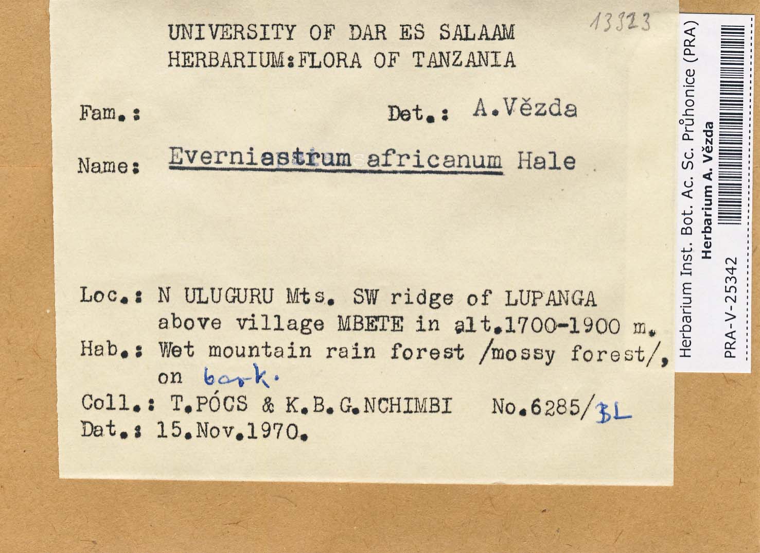 - Deposited in parcel no. 46 Anzia, Pannoparmelia, Everniastrum, Pyxine