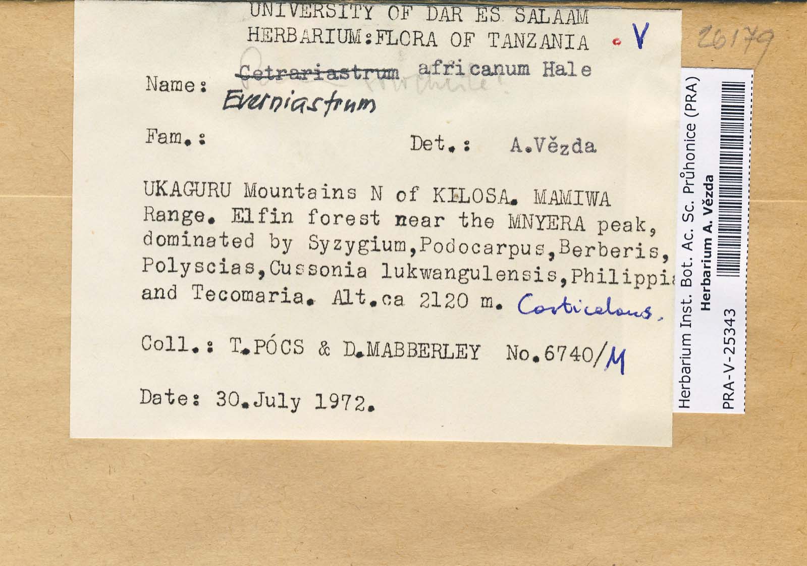 - Deposited in parcel no. 46 Anzia, Pannoparmelia, Everniastrum, Pyxine