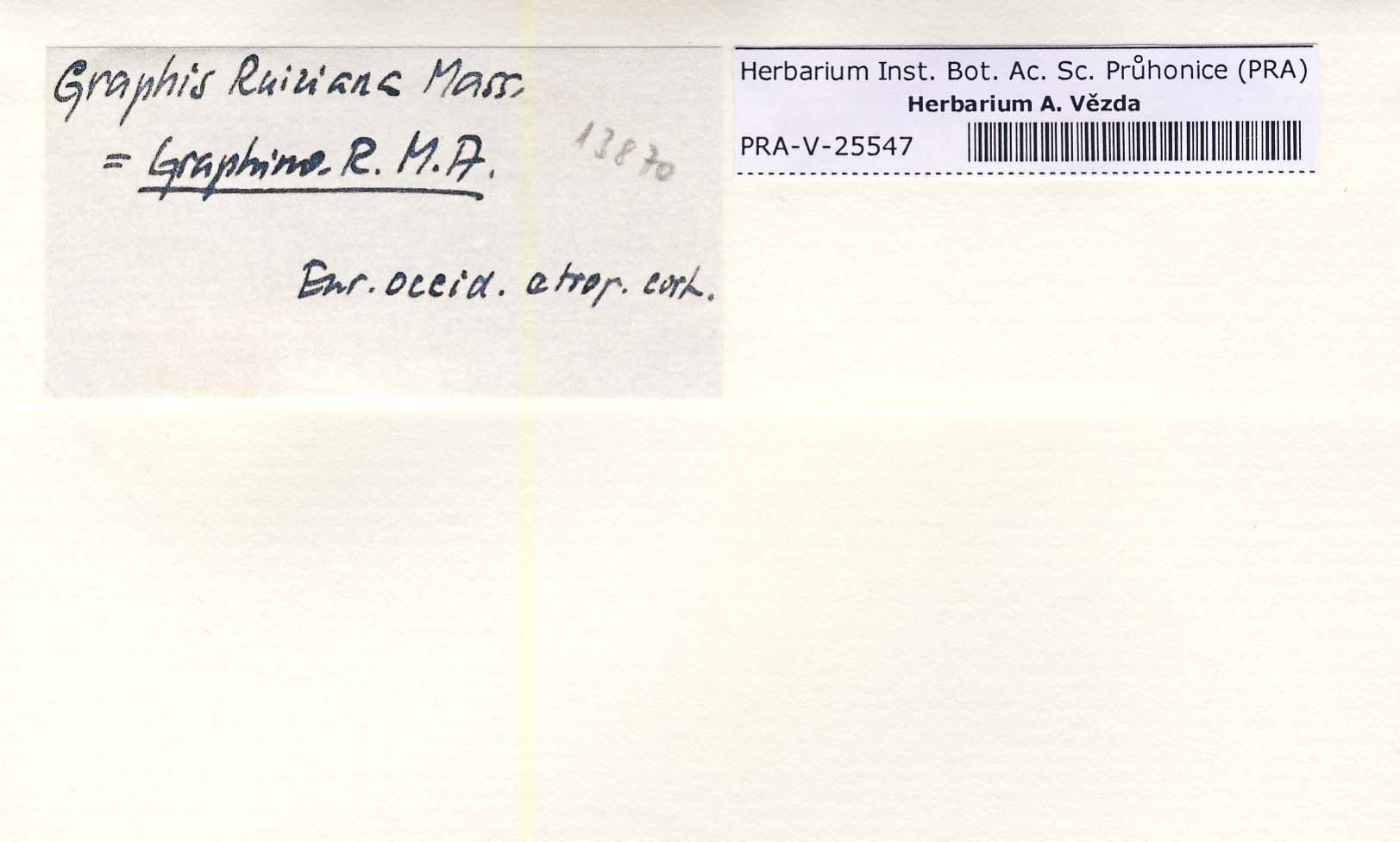 - Deposited in parcel no. 47 Graphina, Graphis, Graphinella, Phaegraphis, Phaegraphina