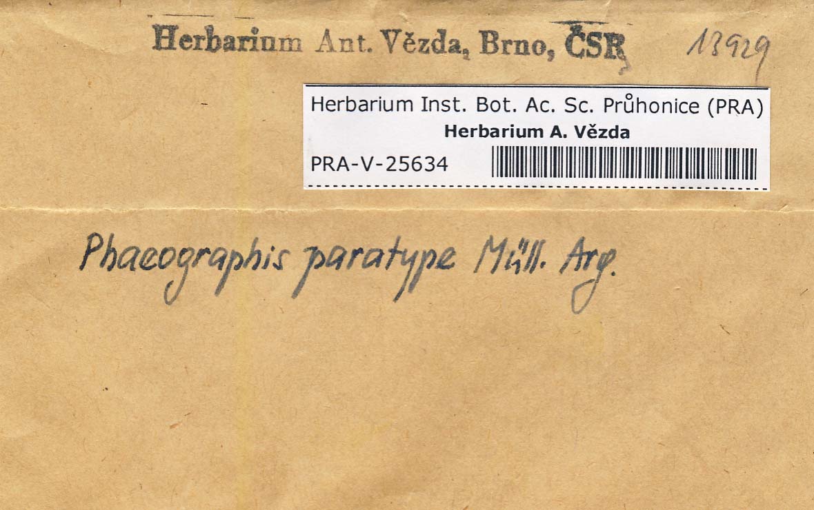 - Deposited in parcel no. 47 Graphina, Graphis, Graphinella, Phaegraphis, Phaegraphina