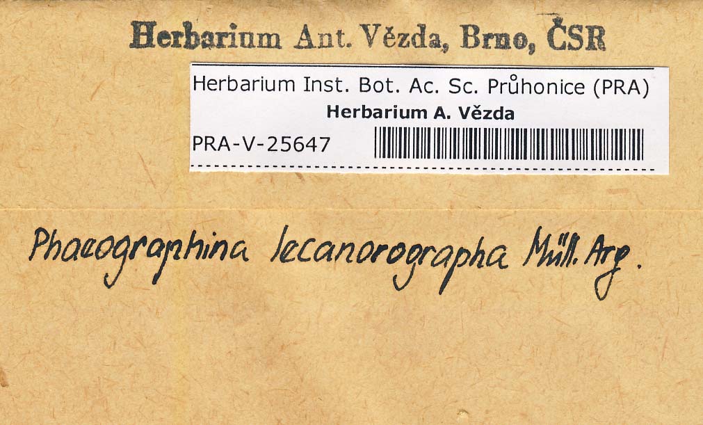 - Deposited in parcel no. 47 Graphina, Graphis, Graphinella, Phaegraphis, Phaegraphina