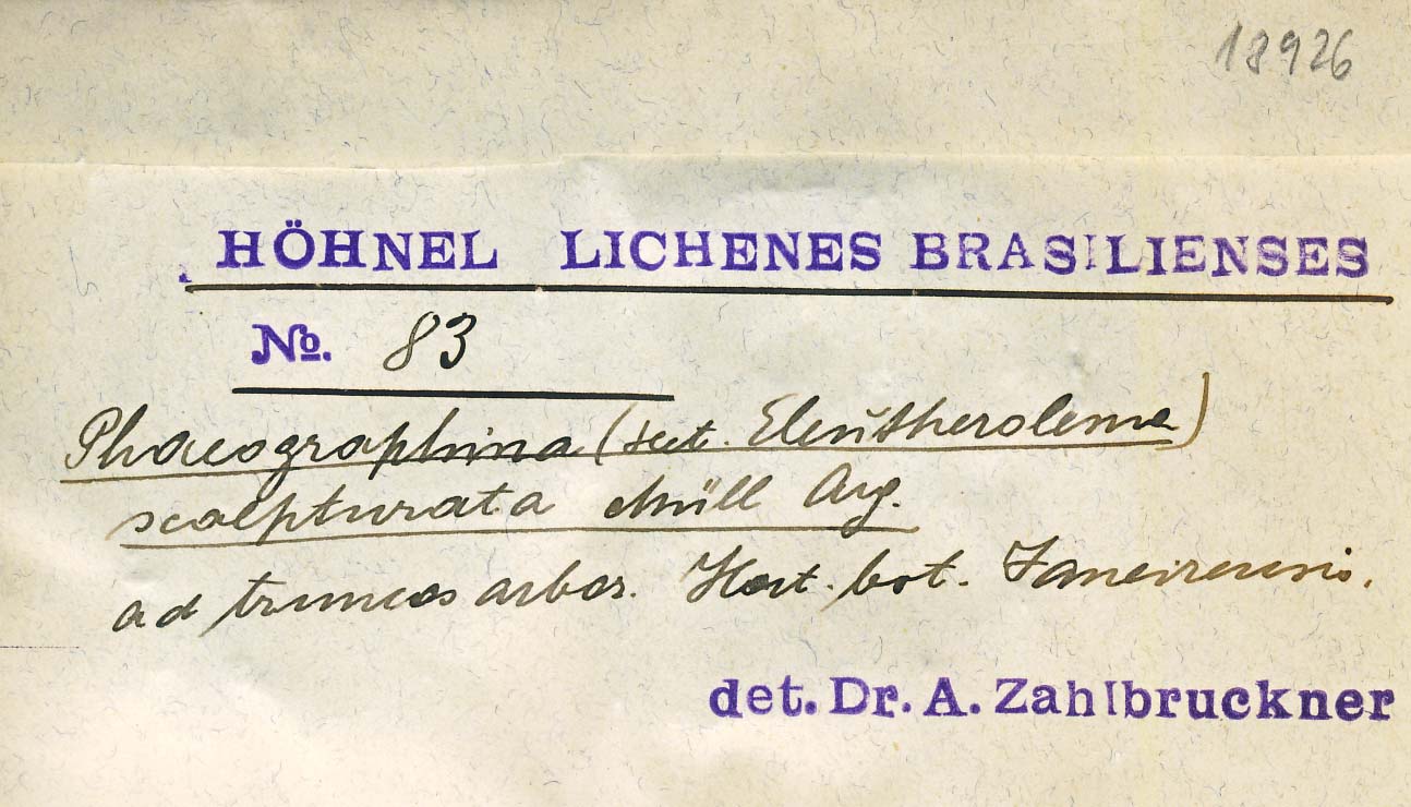 - Deposited in parcel no. 47 Graphina, Graphis, Graphinella, Phaegraphis, Phaegraphina