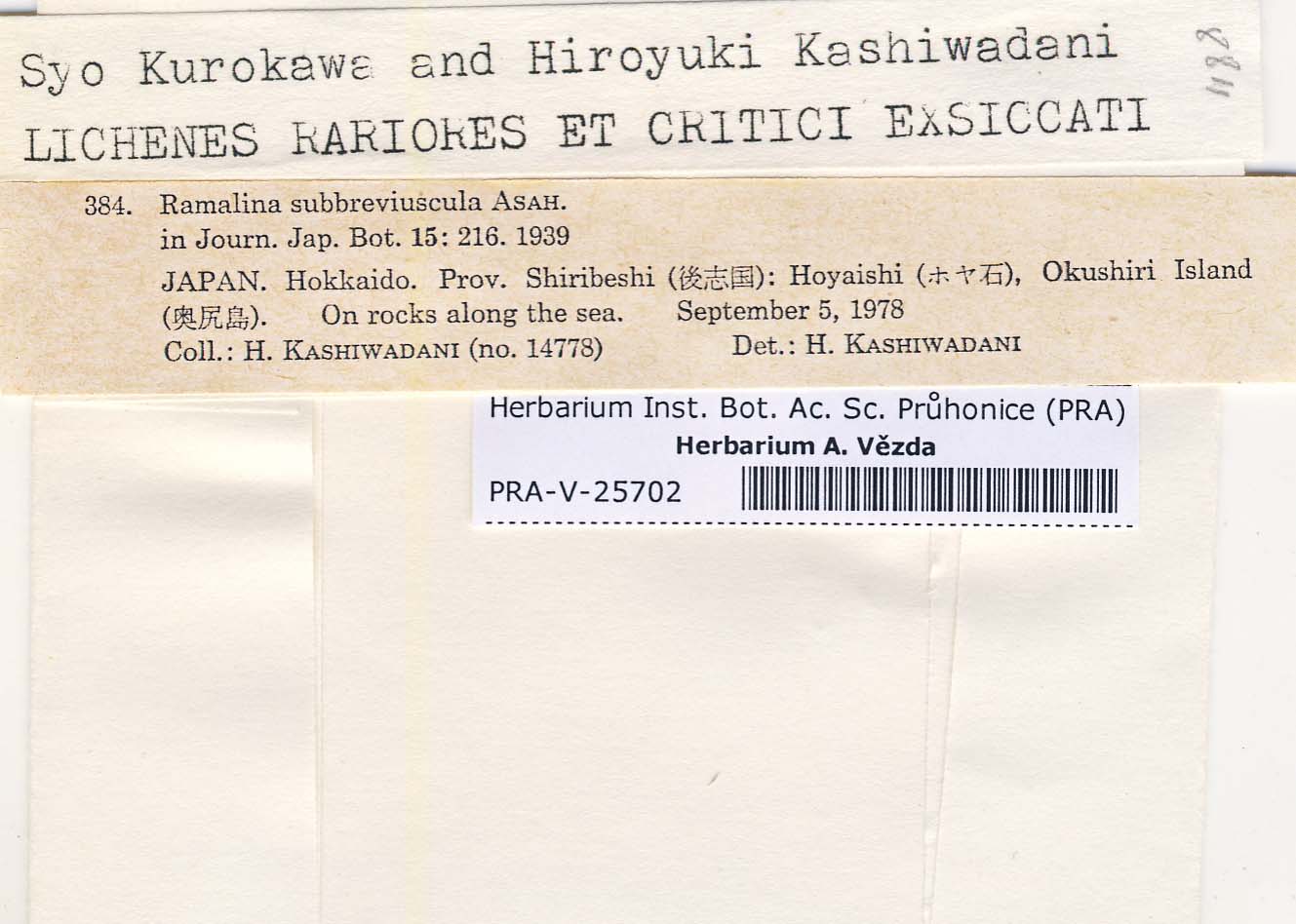- Kurokawa & Kashiwadani, Lich. Rar. Crit. Exs.