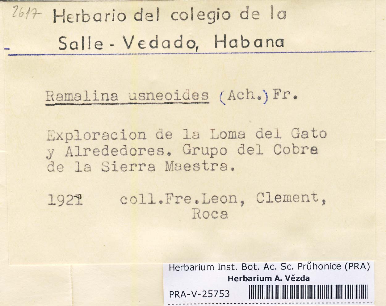 - Deposited in parcel no. 48 Ramalina S-Y