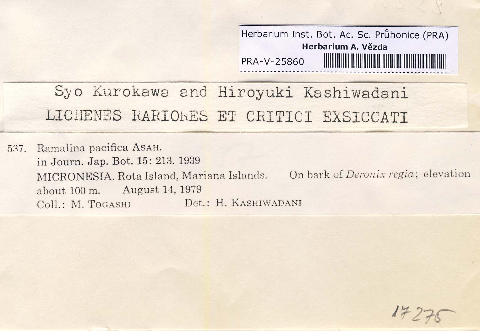 - Kurokawa & Kashiwadani, Lich. Rar. Crit. Exs.