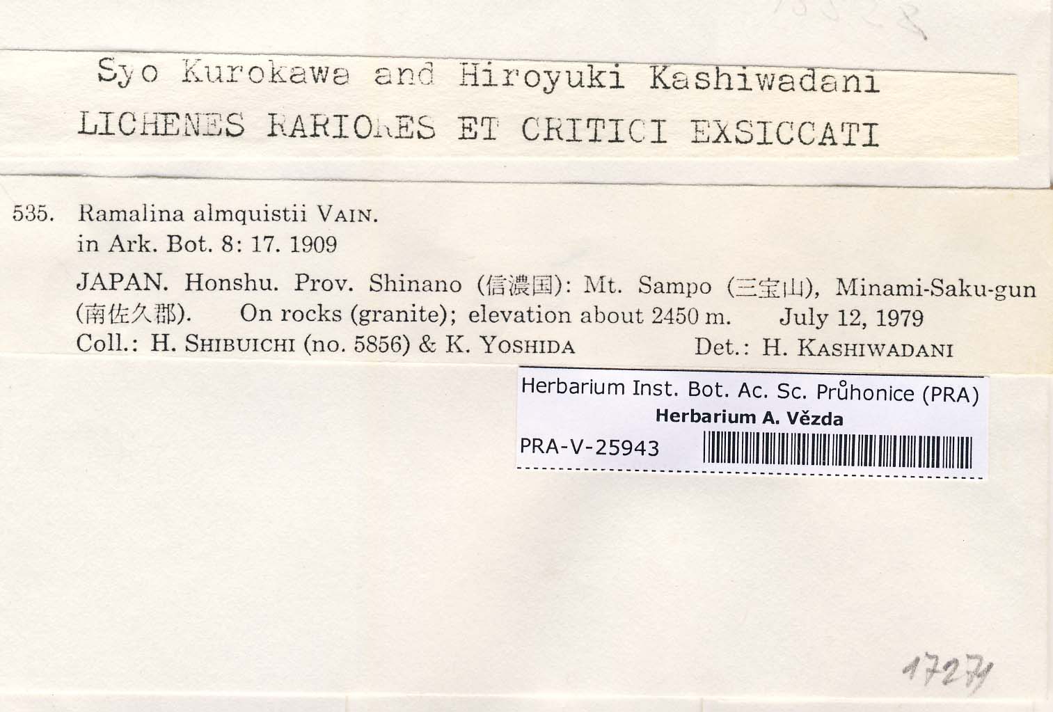- Kurokawa & Kashiwadani, Lich. Rar. Crit. Exs.