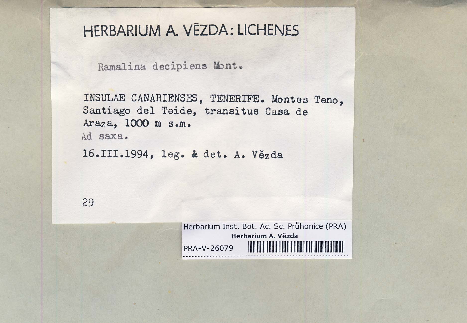 - Deposited in parcel no. 61 Ramalina A-F